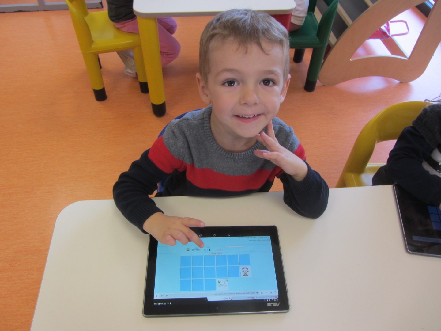 – Nous avons joué avec nos outils numériques à des mémorys, collectivement sur le tableau puis individuellement avec les tablettes.