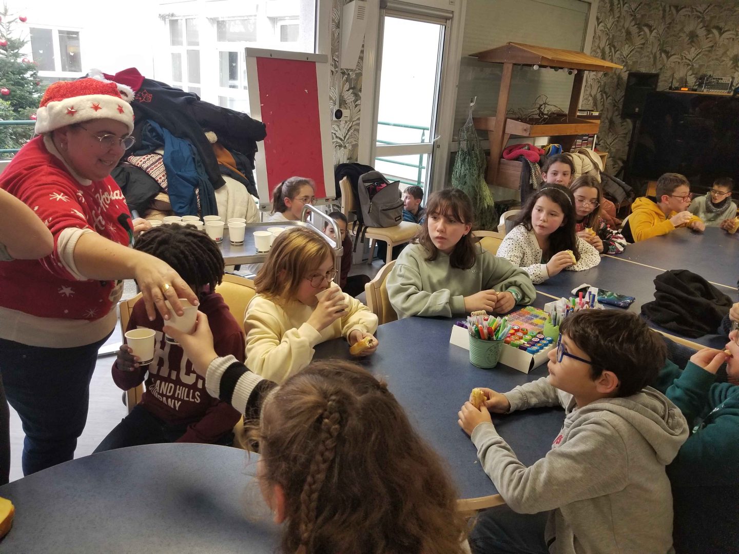Pour terminer l’après-midi, le personnel de la maison de retraite avait préparé un bon goûter : pains au lait, barres de chocolat, roses des sables et jus de fruits. Les élèves et les résidents se sont régalés !