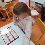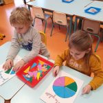 – nous avons reproduit un modèle avec des pions, il fallait bien compter les pions et mettre les couleurs dans le même ordre que le modèle.