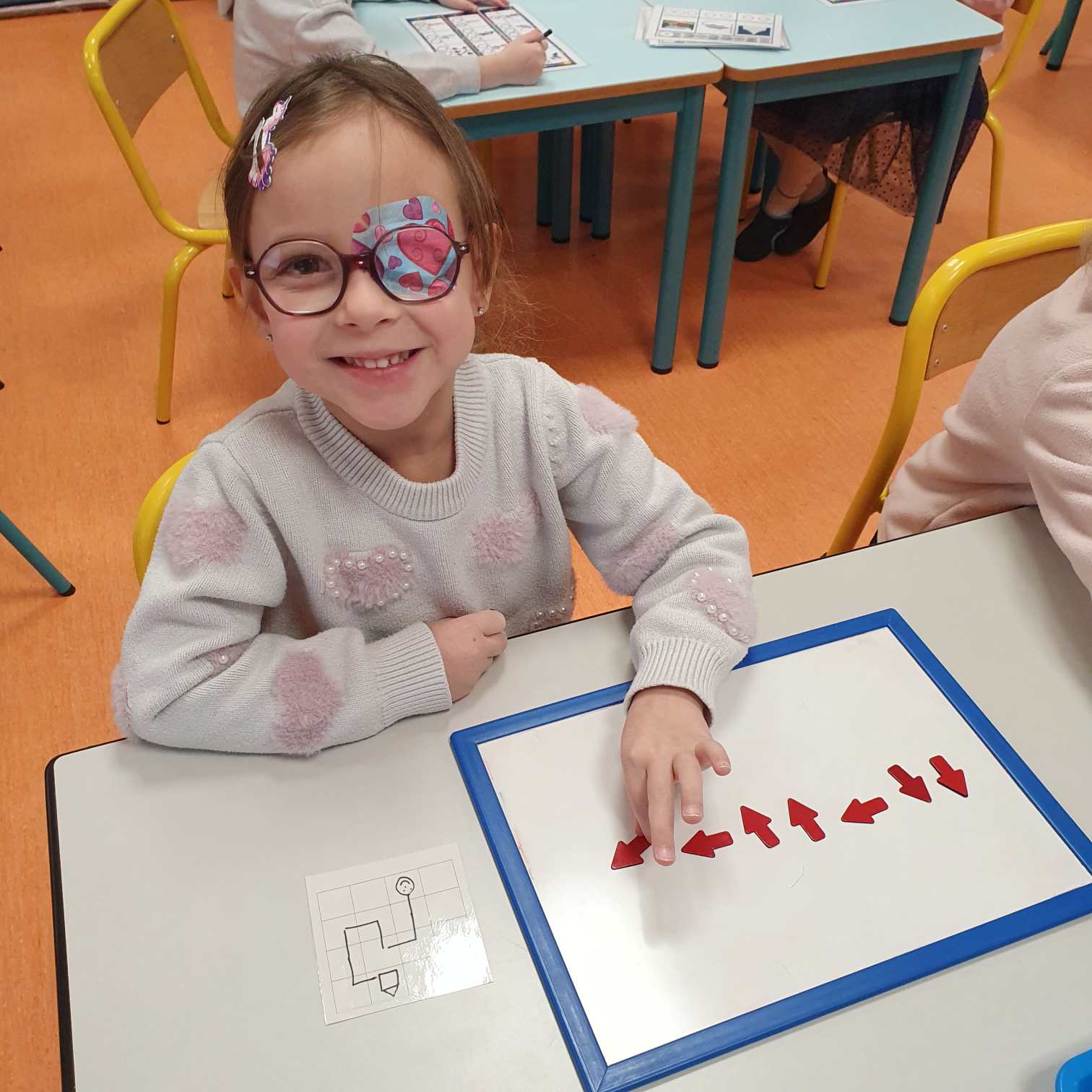 – nous avons aussi codé des déplacements sur quadrillage. A partir d’un tracé il fallait orienter correctement les flèches pour reproduire ce tracé.