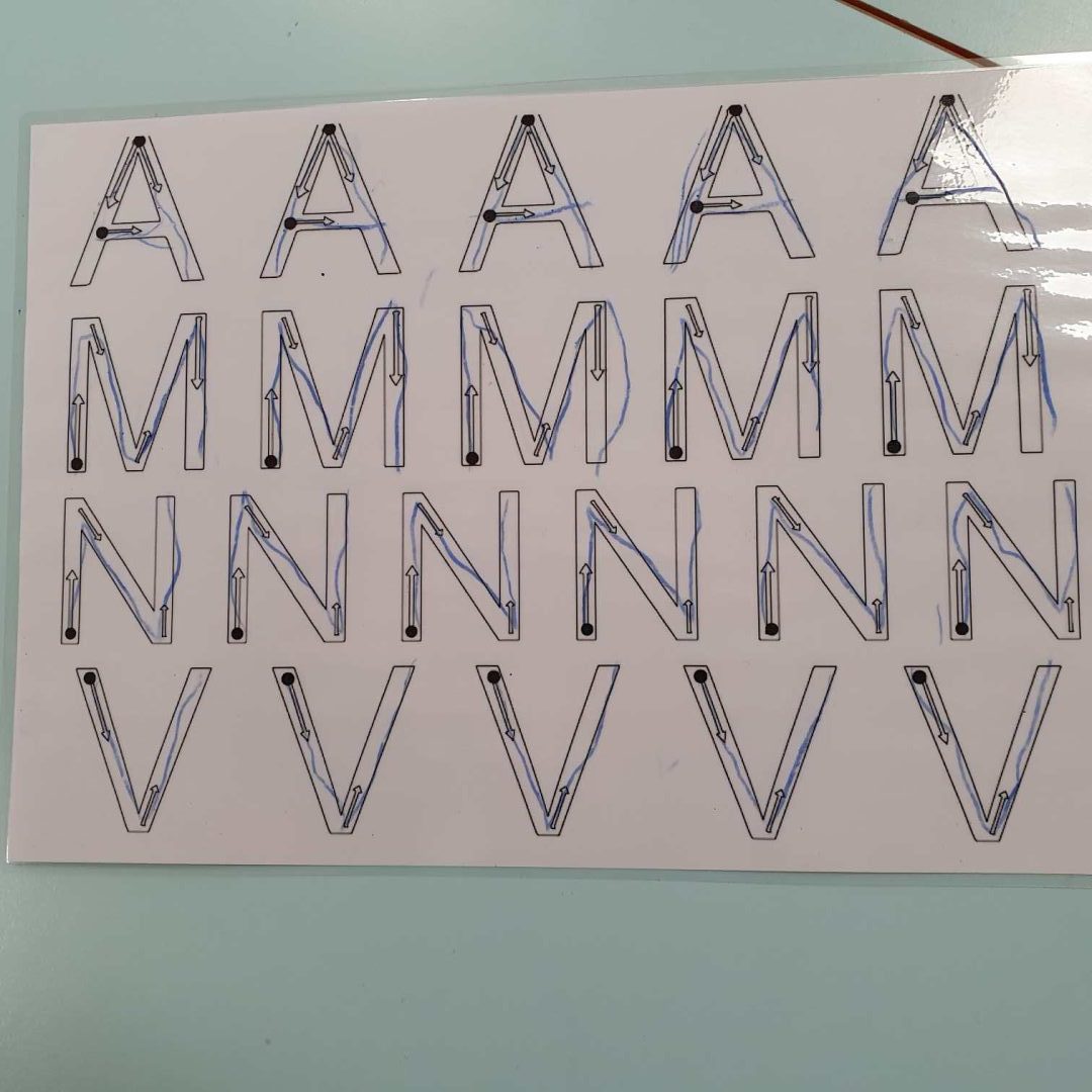 – nous avons aussi tracé les lettres ANMV, attention la maîtresse veut des lettres bien pointues.