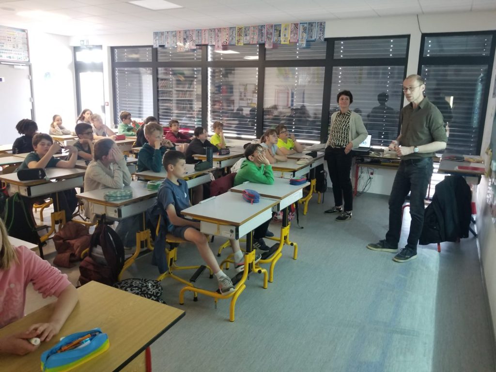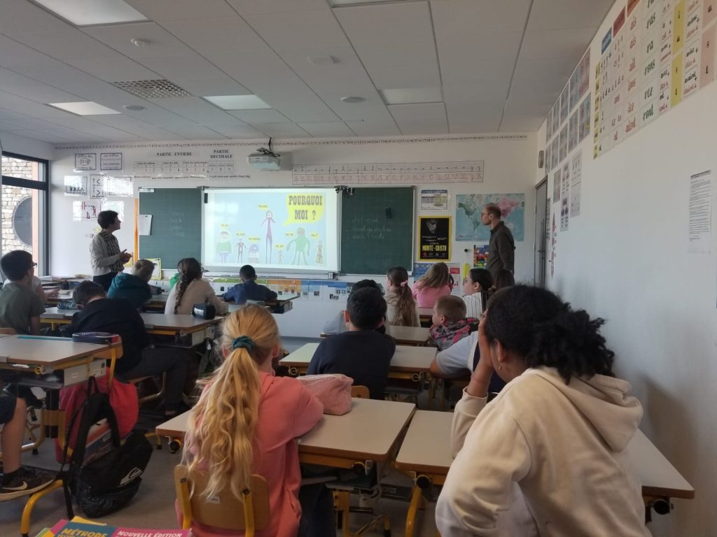 Vendredi 11 avril, tous les élèves de CM2 se sont réunis dans une seule classe pour participer à une intervention sur le harcèlement animée par Mme Prost de la DSDEN et M. Monget, CPE au collège de Dampierre sur Salon.
