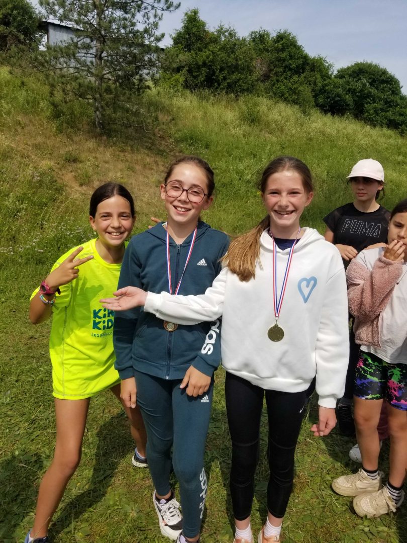 Podium CM2 filles : Manon Jeannin (médaille d’or) et Lou Chevallier (médaille de bronze)