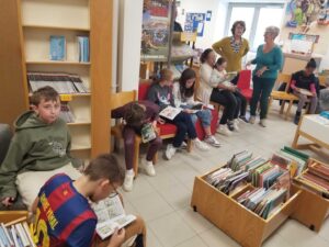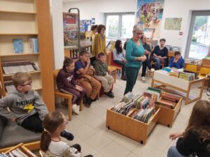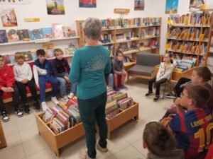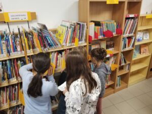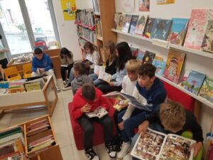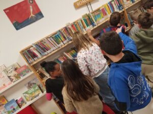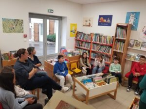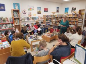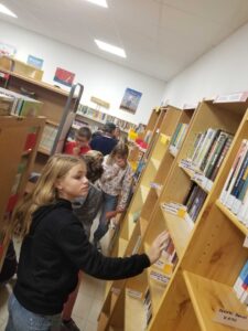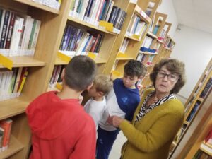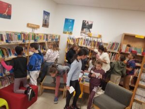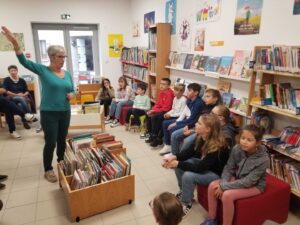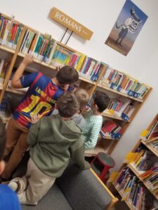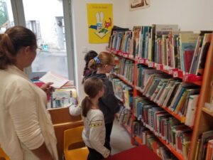 Mardi 23 septembre, c’est par un vrai temps d’automne, que les élèves de CM1-CM2 sont allés à la Bibliothèque. Les bénévoles nous ont accueillis et ont présenté les différents rayons pour les jeunes (romans, albums, BD, mangas, documentaires, …) Nous avons ensuite participé à une chasse au trésor en résolvant des énigmes cachées dans des livres. Il fallait retrouver 5 livres bien rangés à leur place dans la bibliothèque !