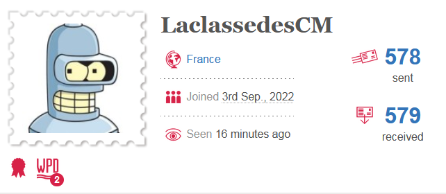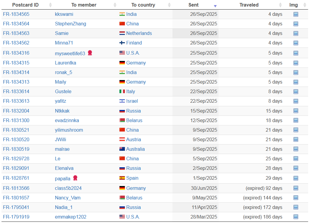 Nous avons actuellement 22 cartes postales qui voyagent vers 13 pays.