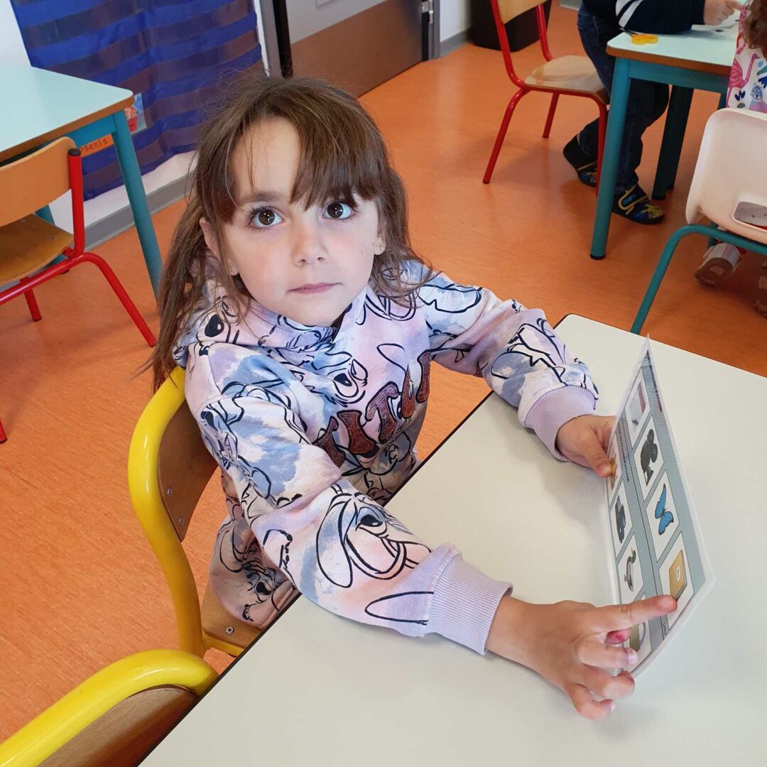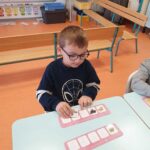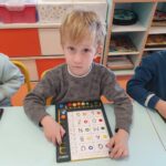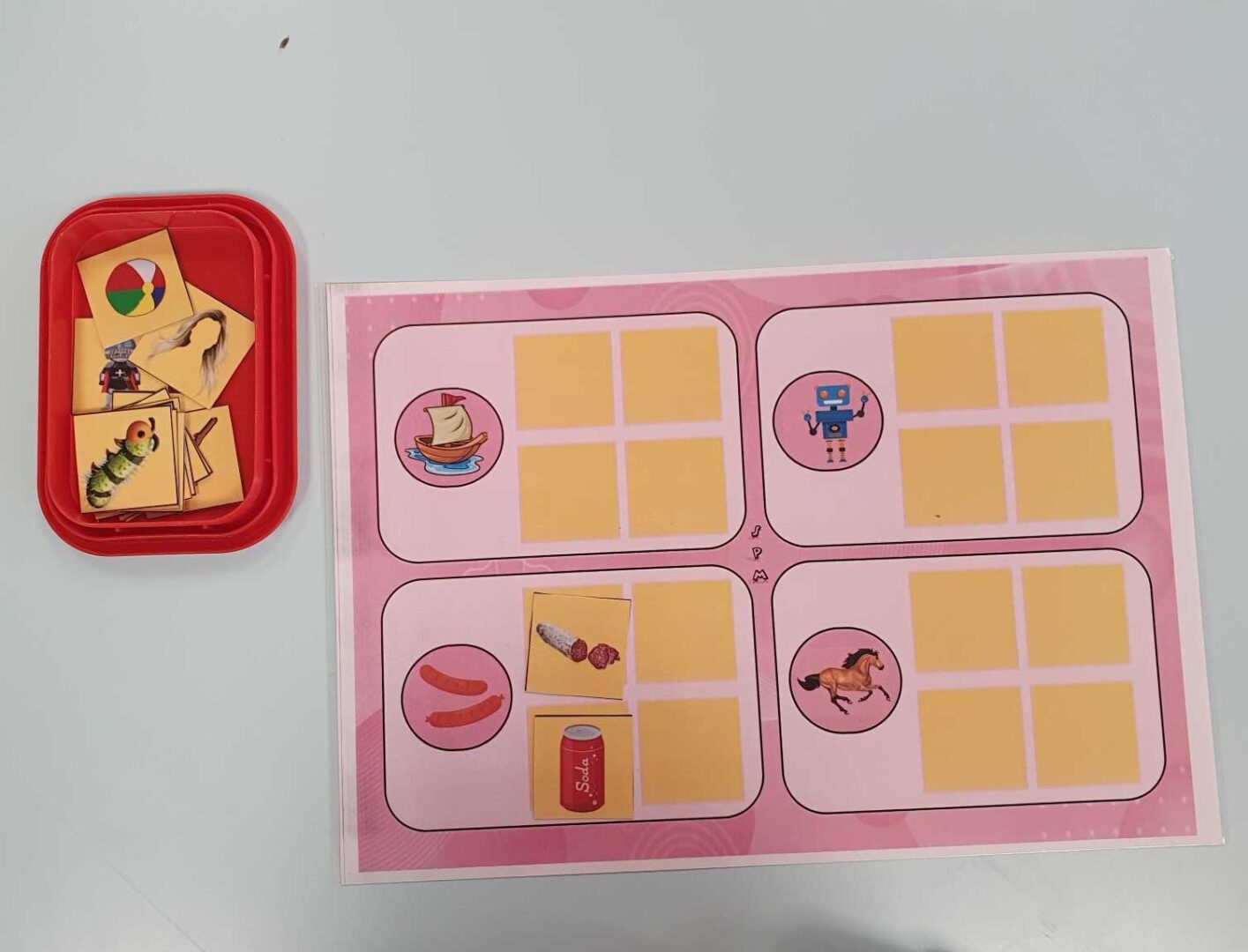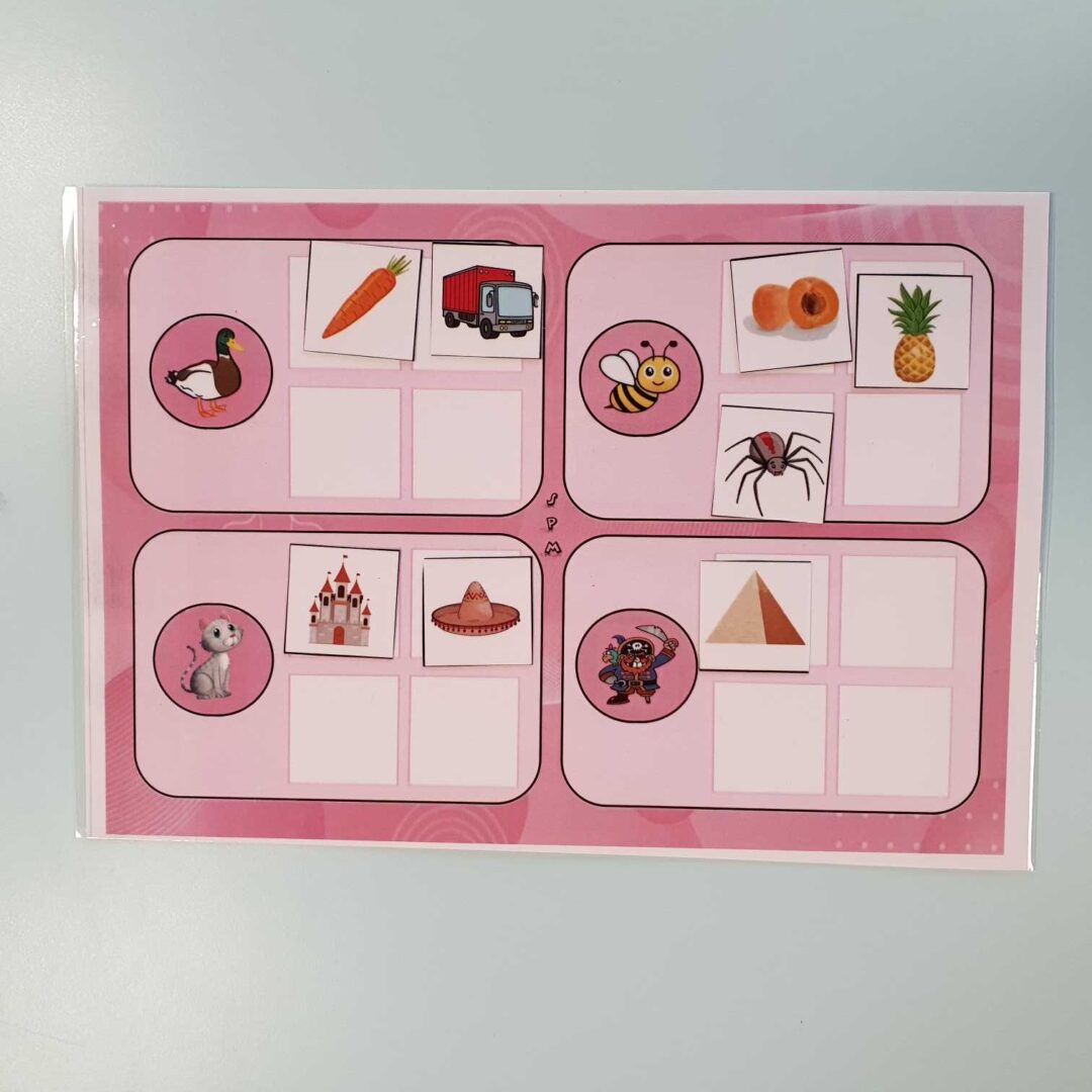 Nous avons aussi joué à différents jeux : placer nos étiquettes à côté du mot avec la même syllabe d’attaque, placer un jeton sur l’intrus, identifier un mot commençant par une syllabe imposée…