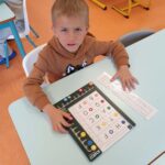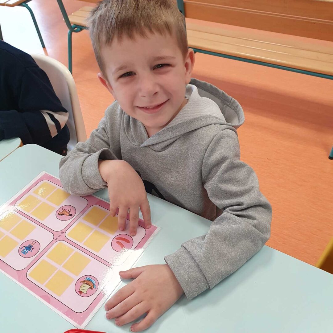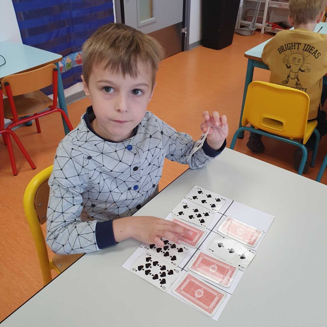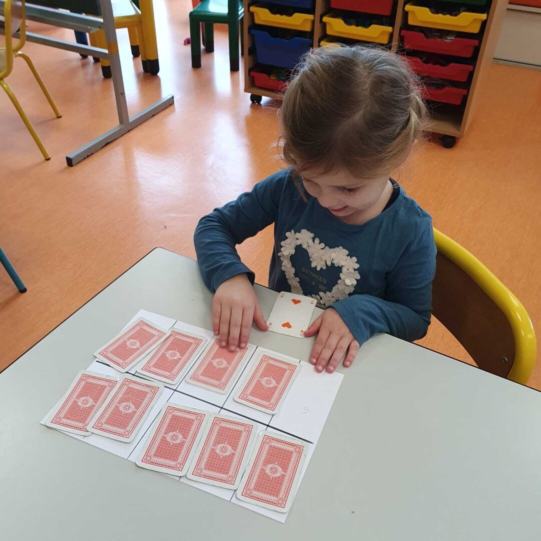 Pour continuer la reconnaissance rapide de collections et la lecture des nombres jusqu’à 10, nous avons joué à la réussite.
