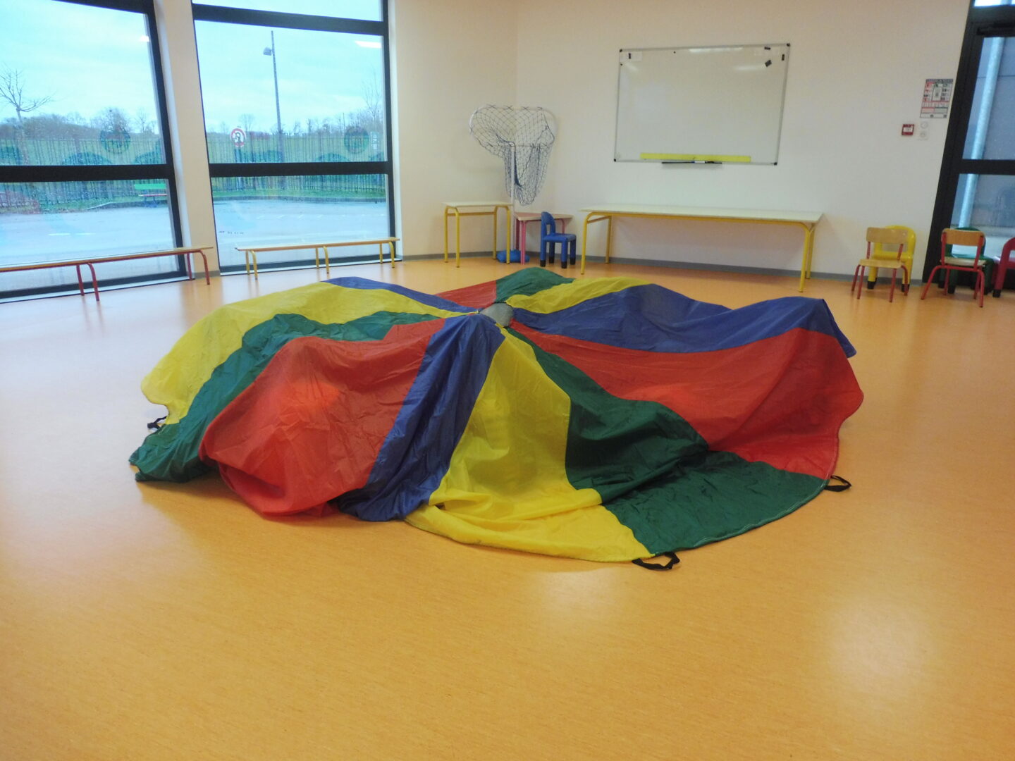 Cette semaine, dans la salle de sport, nous avons découvert un nouveau jeu : le parachute.