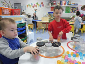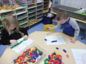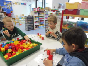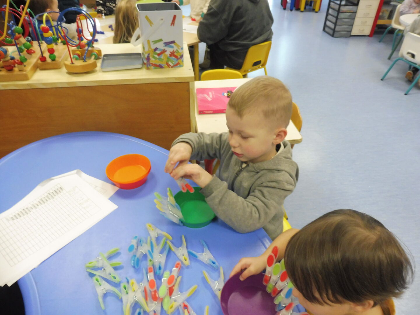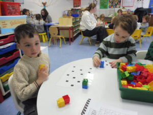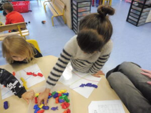 En numération, nous avons commencé notre travail pour apprendre à construire une collection de 2.