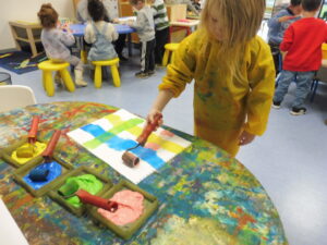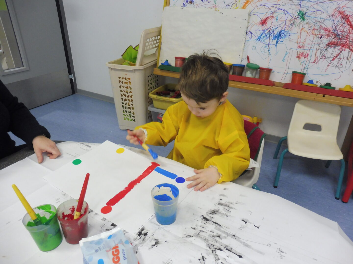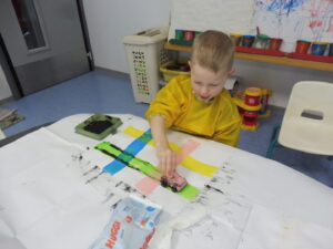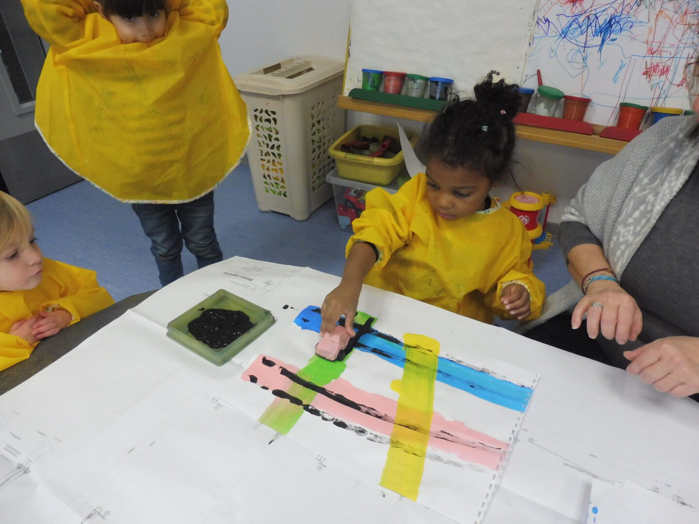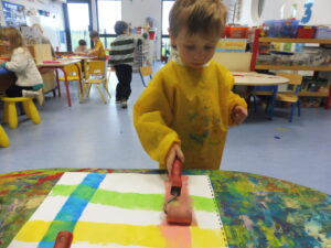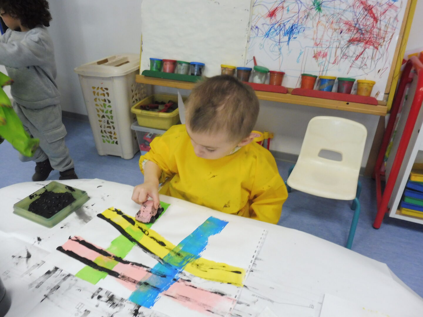En graphisme, nous avons terminé notre travail sur la ligne continue. Avec le rouleau, nous avons tracé des routes de couleur.