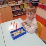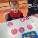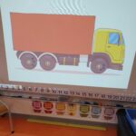 Nous avons résolu un problème que le maître Vincent est venu nous poser : combien de boulons le garagiste doit-il dévisser pour changer toutes les roues du camion affiché au tableau ? Nous pouvions soit dessiner la solution, soit manipuler (les ronds roses représentant les roues et les jetons les boulons).