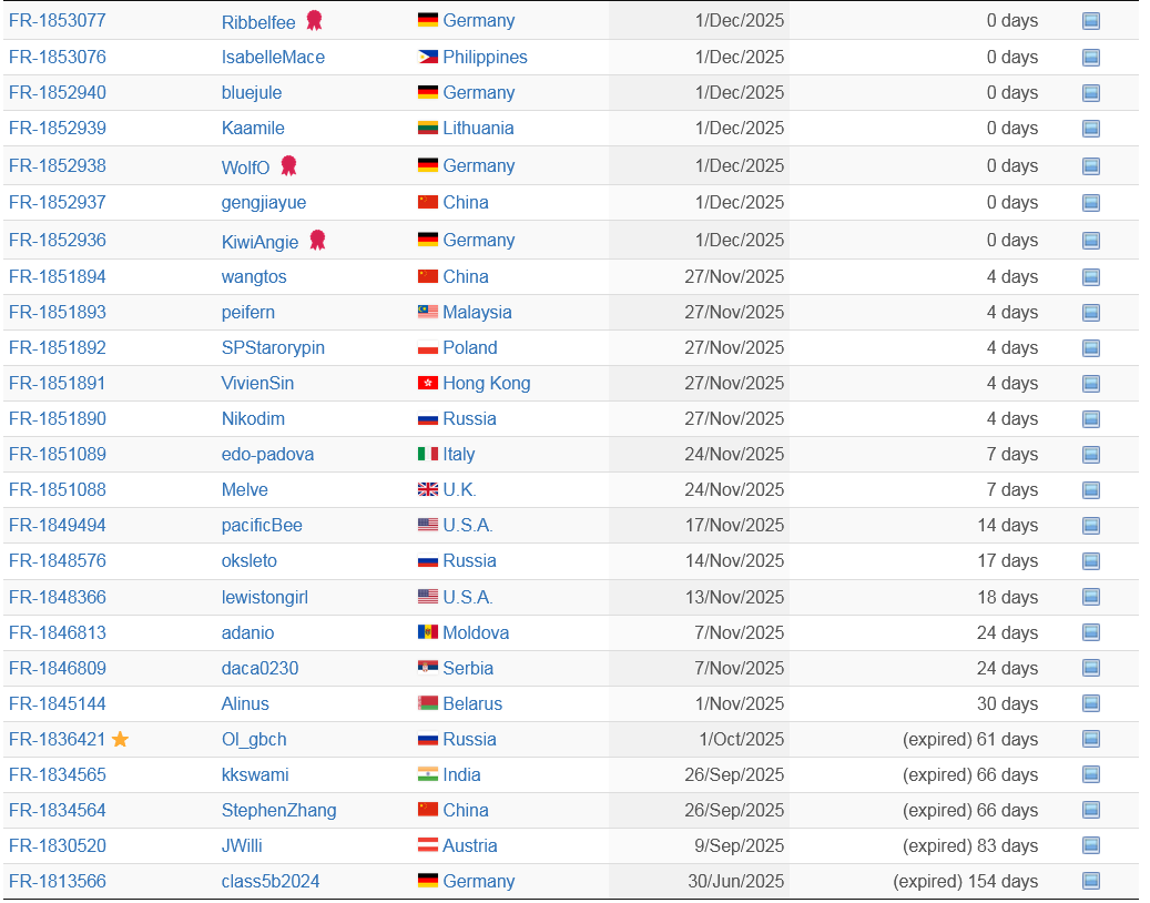 Nous avons reçues 32 cartes postales : 11 d’Allemagne, 5 des USA, 3 de Russie, 3 des Pays-Bas, 2 de Chine, 1 du Royaume-Uni, 1 du Portugal, 1 de Singapour, 1 de Taïwan, 1 de Slovaquie, 1 d’Indonésie, 1 du Japon et 1 de Finlande.