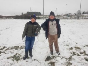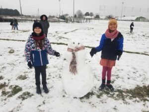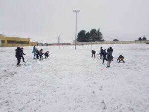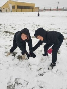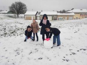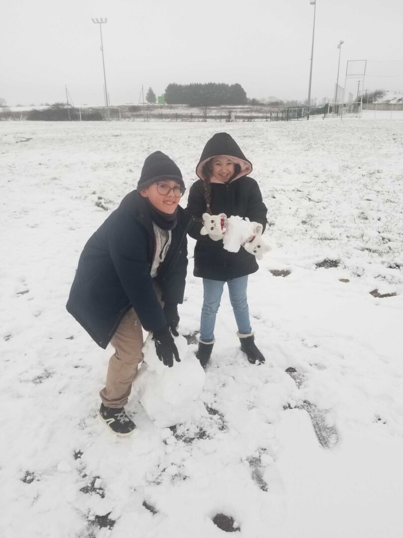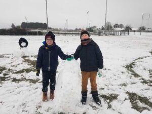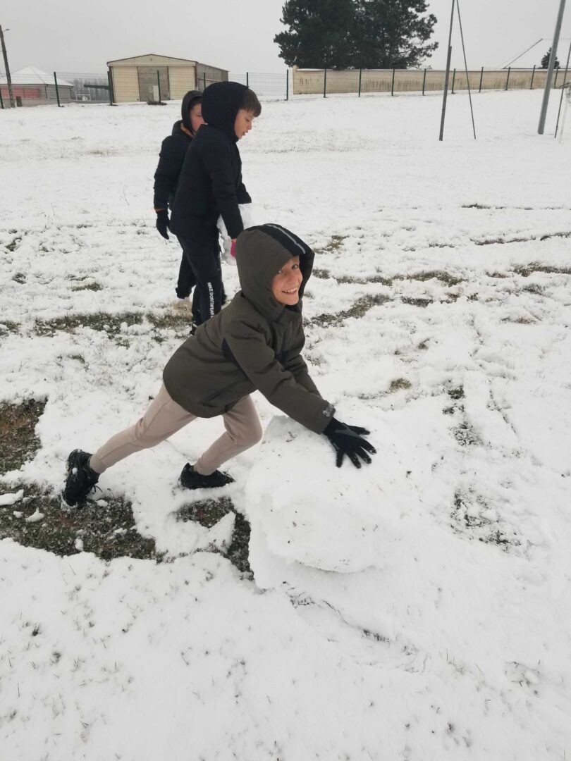 Ensuite, les plus frileux sont rentrés avec maitresse Pascale pour se réchauffer, tandis que les autres sont restés encore un peu avec maitre Samuel pour profiter d’une bonne bataille de boules de neige.