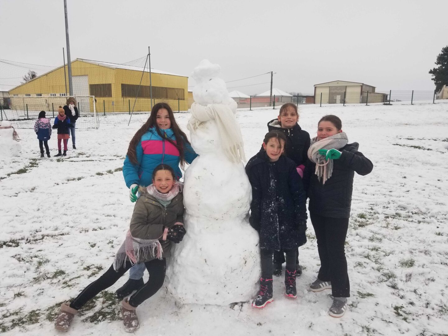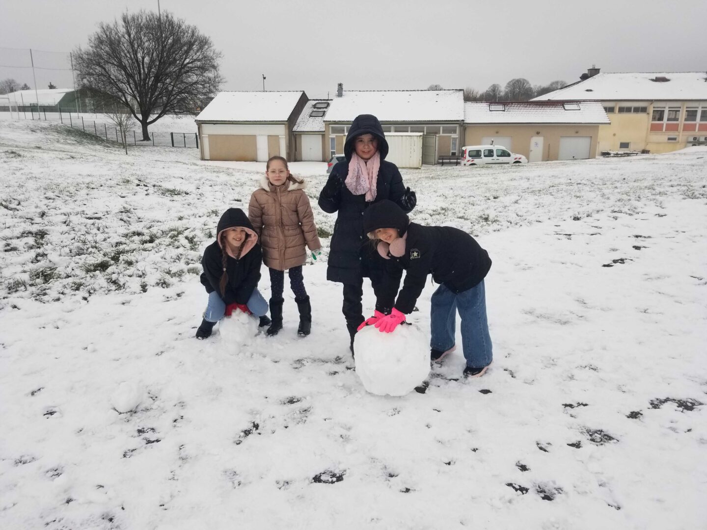 Au programme, construction de bonhommes de neige. Rapidement, les élèves ont réussi à fabriquer de grosses boules avec la belle couche de neige tombée hier et dans la nuit.
