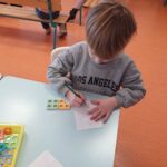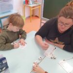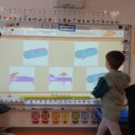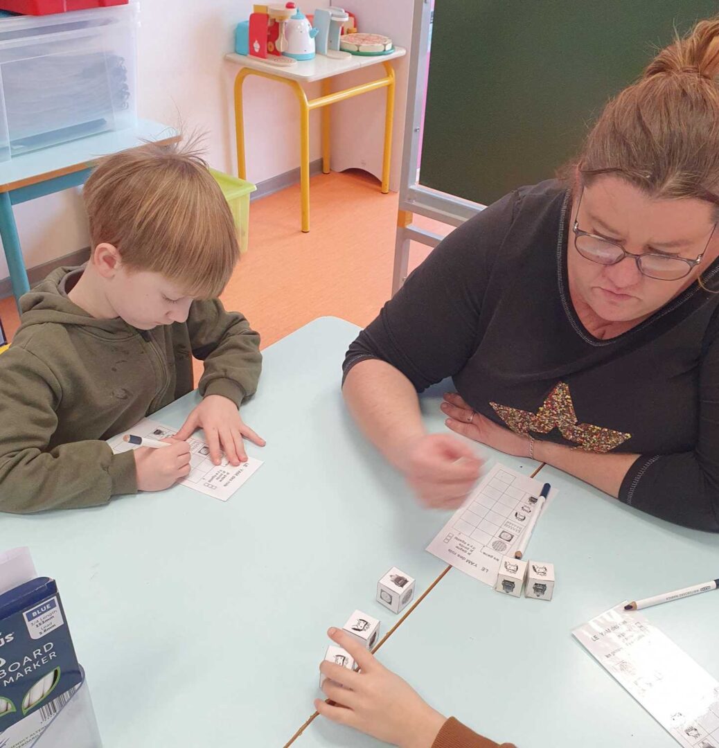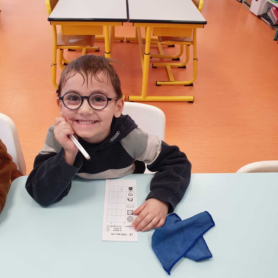 – nous avons écouté les consignes de positionnement du tableau pour placer les objets, cela nous a fait réviser les termes haut, bas, gauche, droite, milieu, devant, sous…