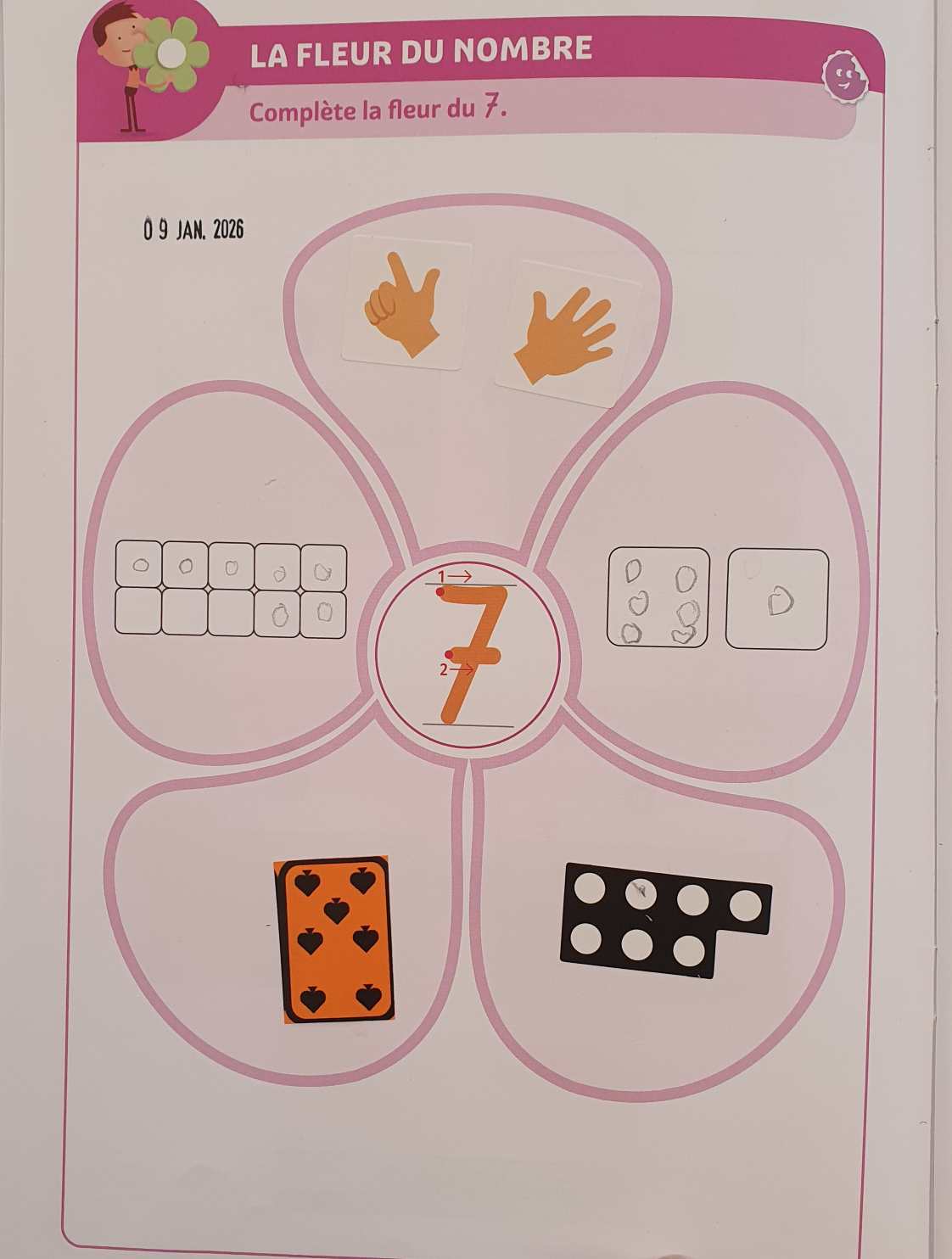 – nous avons complété notre fleur du 7 sur notre cahier des nombres