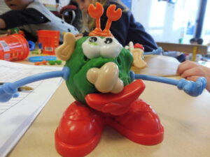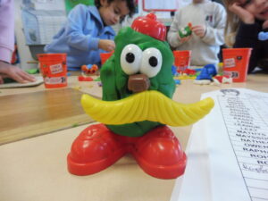 Cette semaine, nous avons continué notre travail autour du corps. Pour commencer, nous avons fait des Mr Patate avec la pâte à modeler.Il fallait placer les éléments au bon endroit.