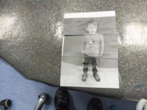 Puis nous avons réalisé le puzzle de notre corps. La maîtresse nous a pris en photo et à découper la photo en 3 morceaux.