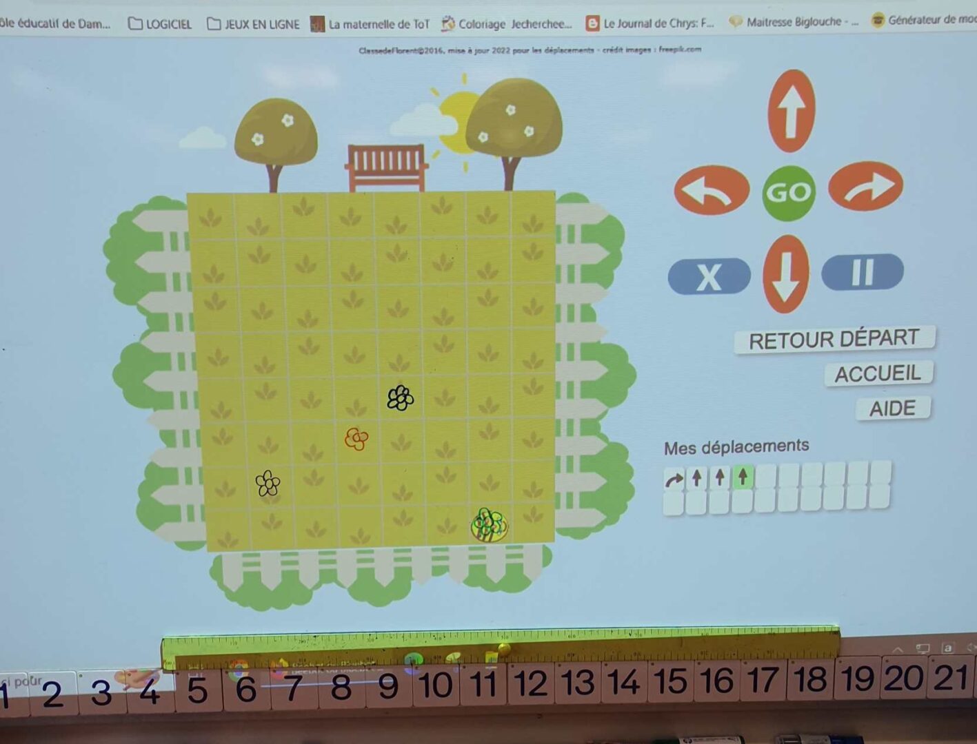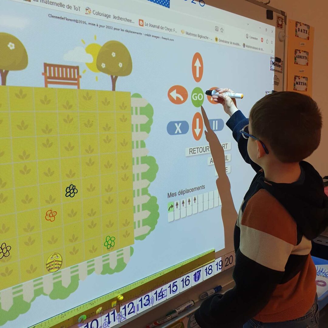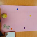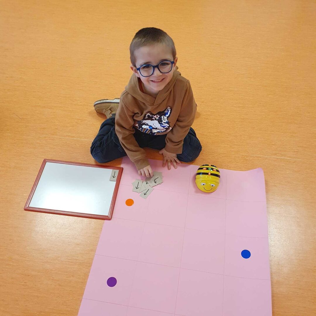 Depuis plusieurs semaines, nous jouons aussi avec un petit robot abeille que nous programmons pour qu’elle effectue les trajets demandés.