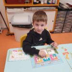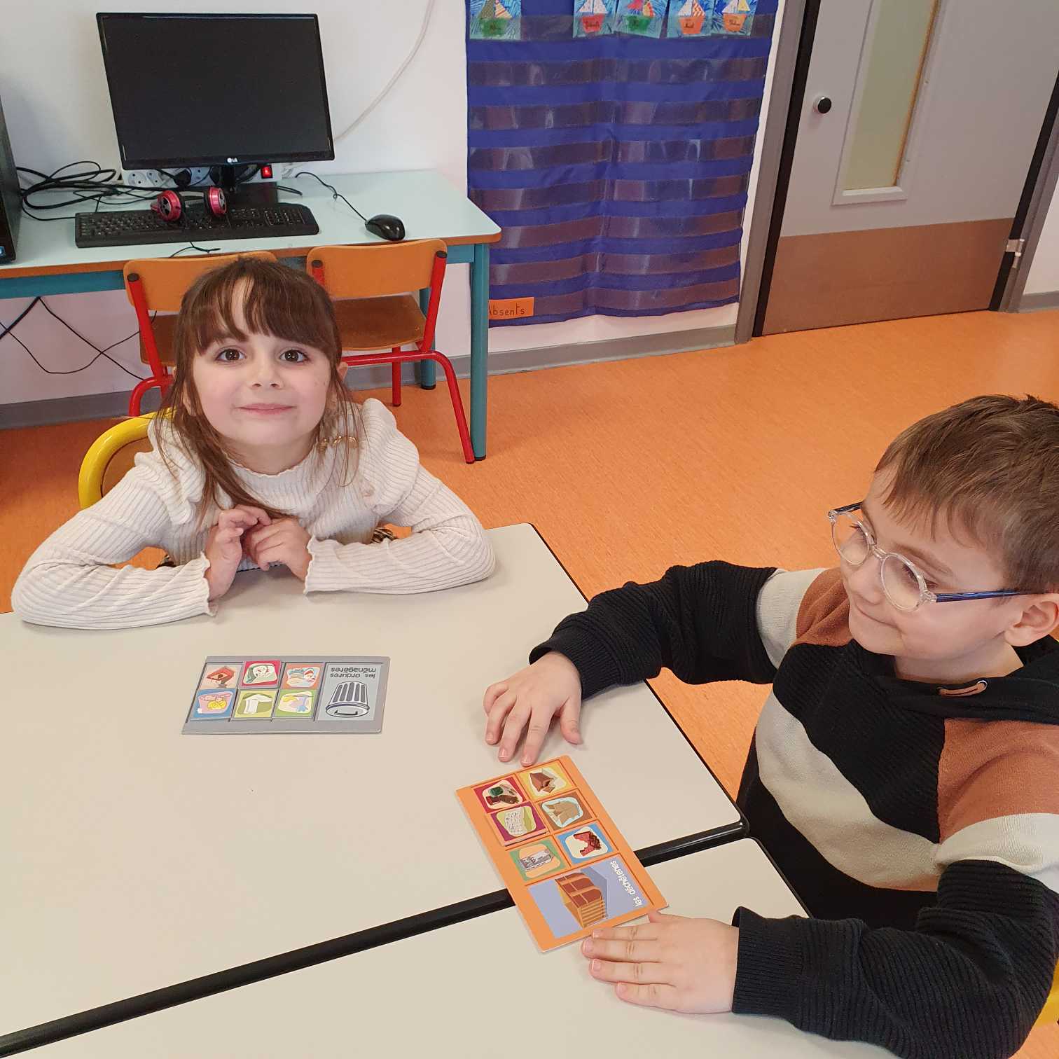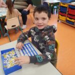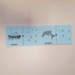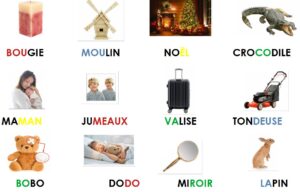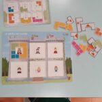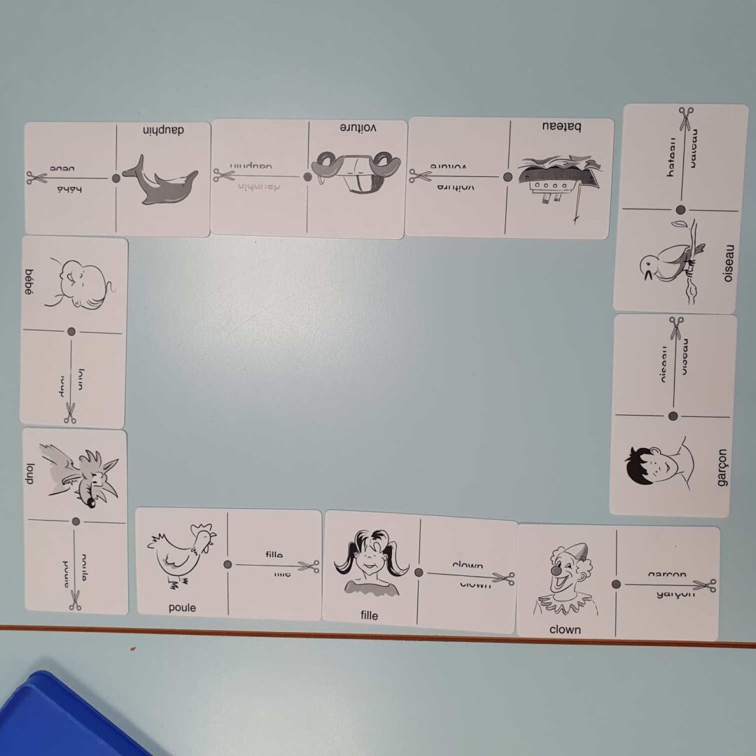 Nous avons aussi réalisé des dominos d’indices sur les mots. Il fallait soit associer le mot et le mot en partie caché, le mot avec les lettres qui le composent…