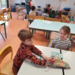 Vendredi matin, Manon est venue pour la dernière fois travailler avec nous sur le tri des déchets. Après avoir aidé Capriccio à trier les déchets de son petit déjeuner et découvert une nouvelle poubelle : le compost (avec Hubert le ver de terre), nous avons fait 3 ateliers : un loto, un atelier ou il fallait barrer les éléments qui n’allaient pas dans la poubelle indiquée et un atelier dans lequel nous aidions Capriccio à nettoyer son château. Ces 3 interventions nous ont permis de bien comprendre comment trier et pourquoi trier (la poubelle jaune étant magique car elle transforme les déchets en de nouveaux objets). a nous maintenant de continuer à la maison…