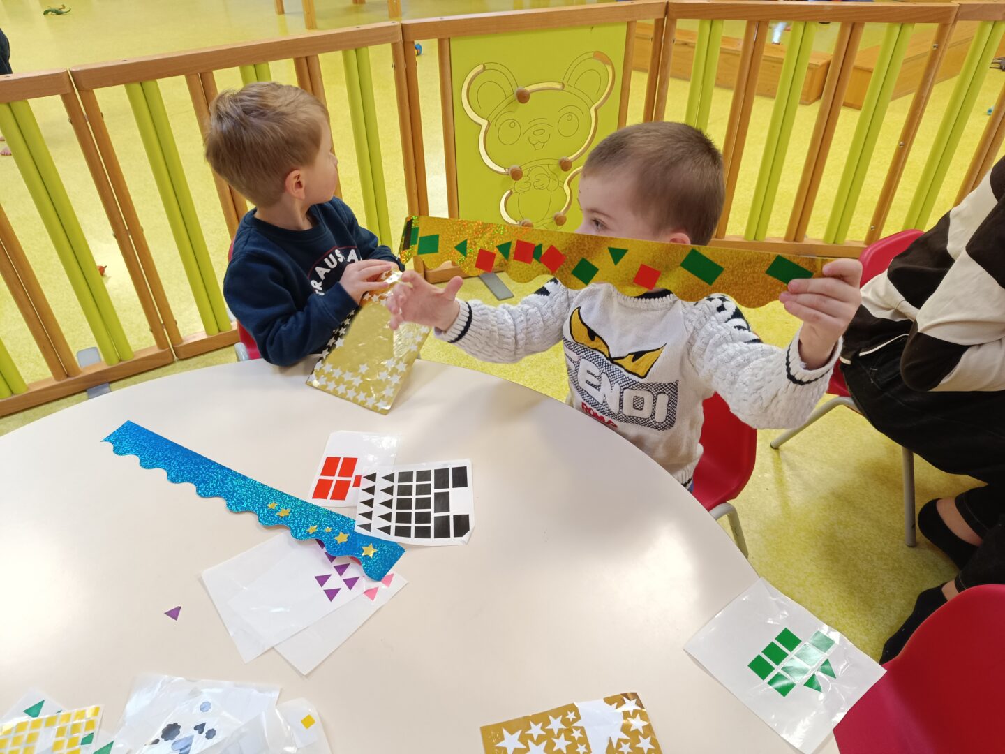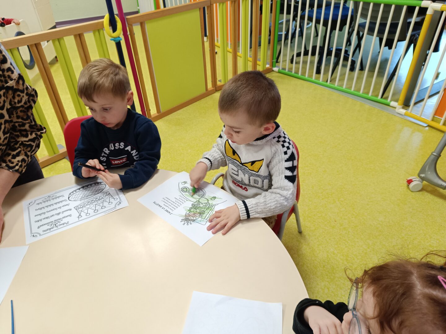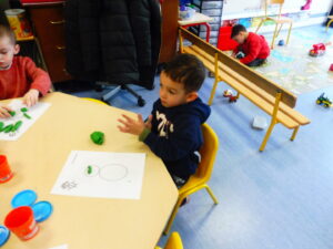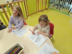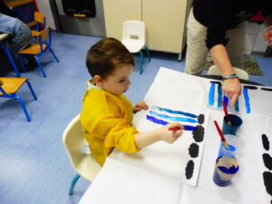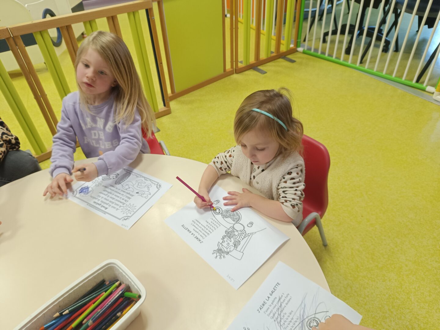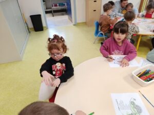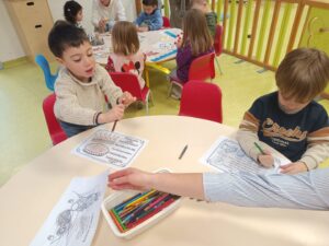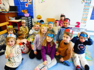 Jeudi matin, nous sommes allés rencontrer les enfants de la crèche. Nous avons mangé une galette avec eux, puis nous avons décoré une couronne. Nous avons également utilisé le mur d’escalade pour grimper sur la structure de motricité. Nous avons également fait des coloriages sur le thème des galettes.