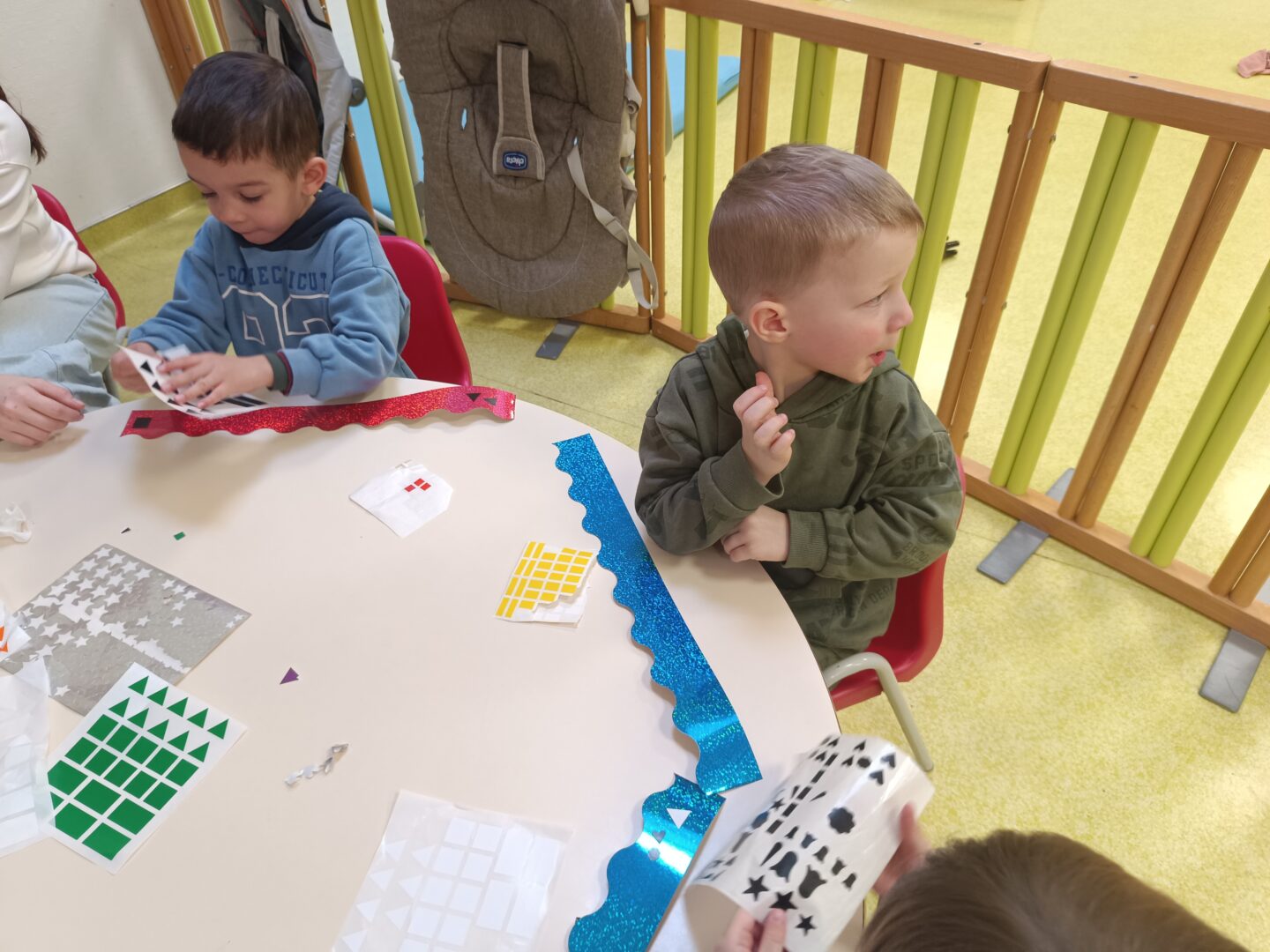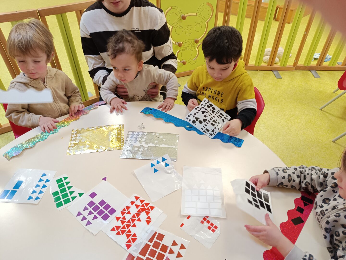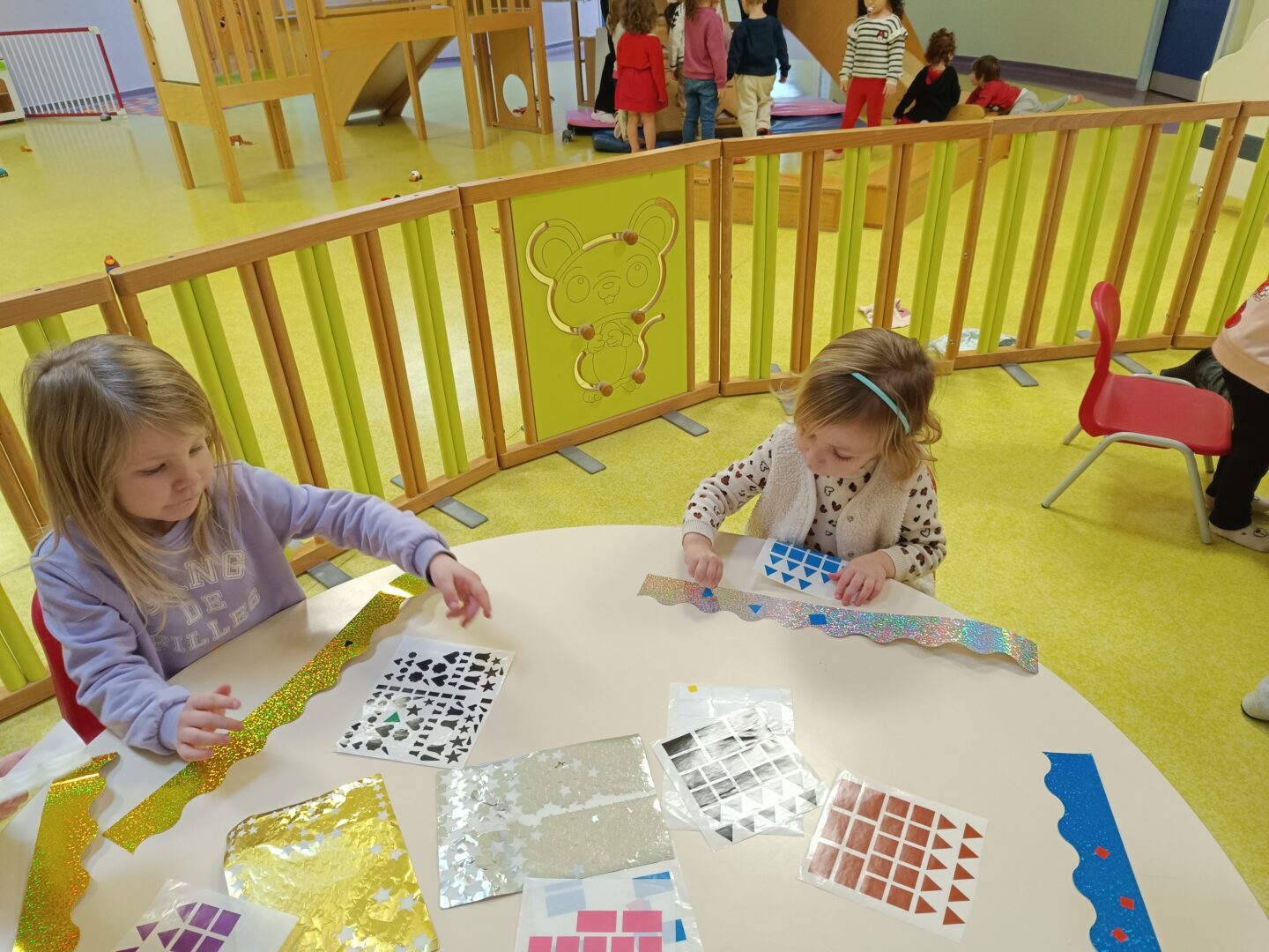Jeudi matin, nous sommes allés rencontrer les enfants de la crèche. Nous avons mangé une galette avec eux, puis nous avons décoré une couronne. Nous avons également utilisé le mur d’escalade pour grimper sur la structure de motricité. Nous avons également fait des coloriages sur le thème des galettes.