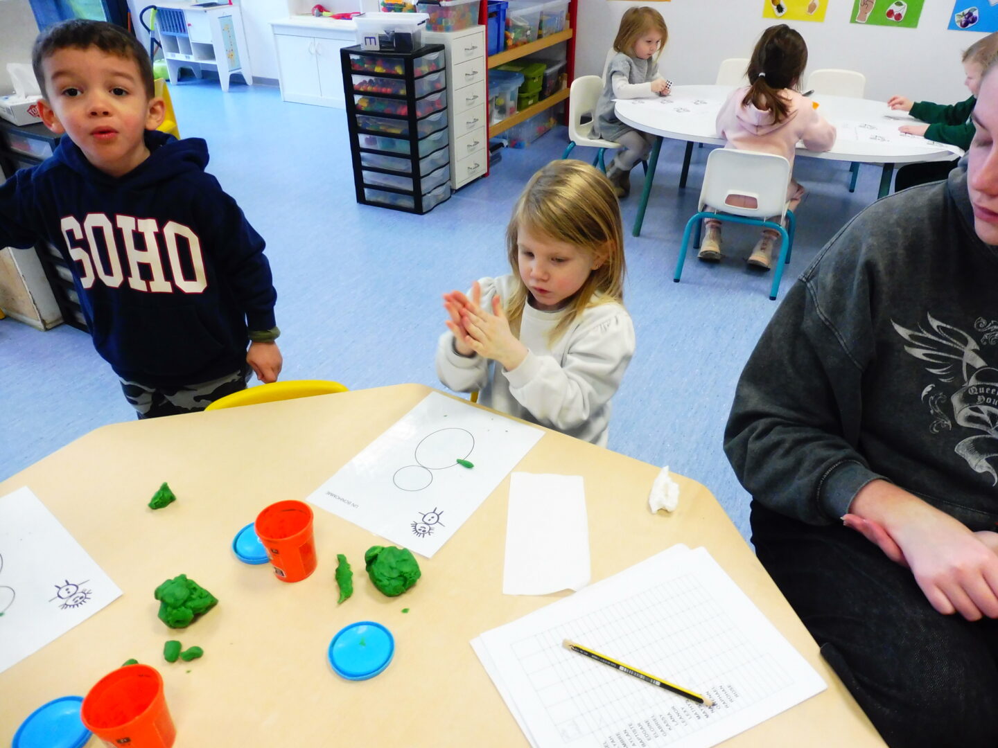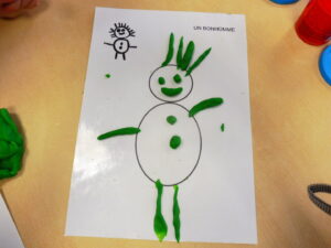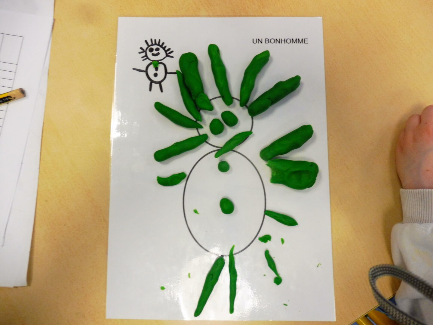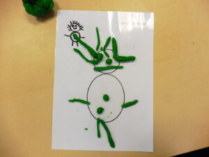 Avec la pâte à modeler, nous avons aussi ajouté les parties manquantes du bonhomme.