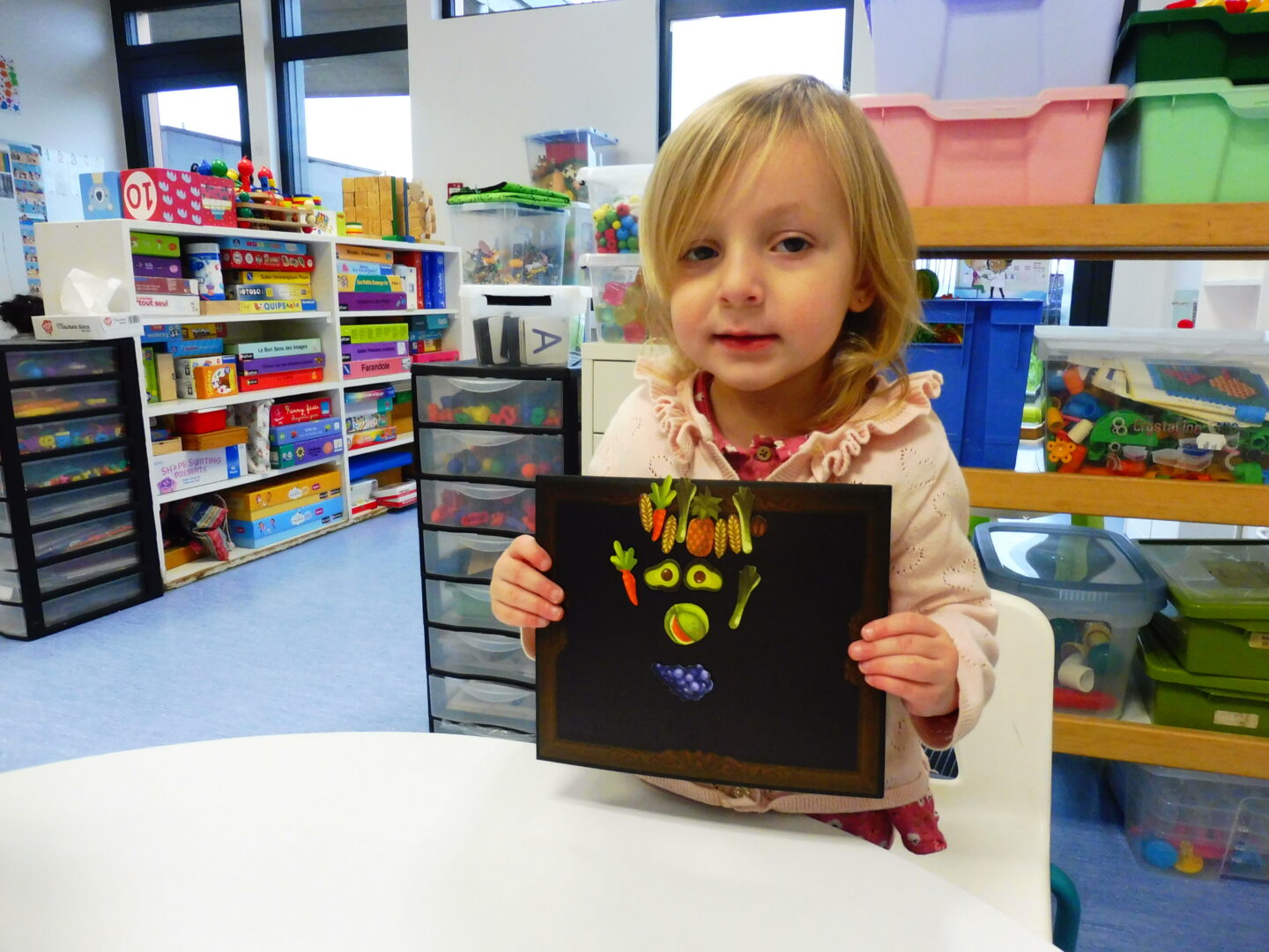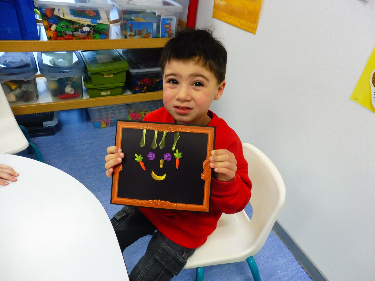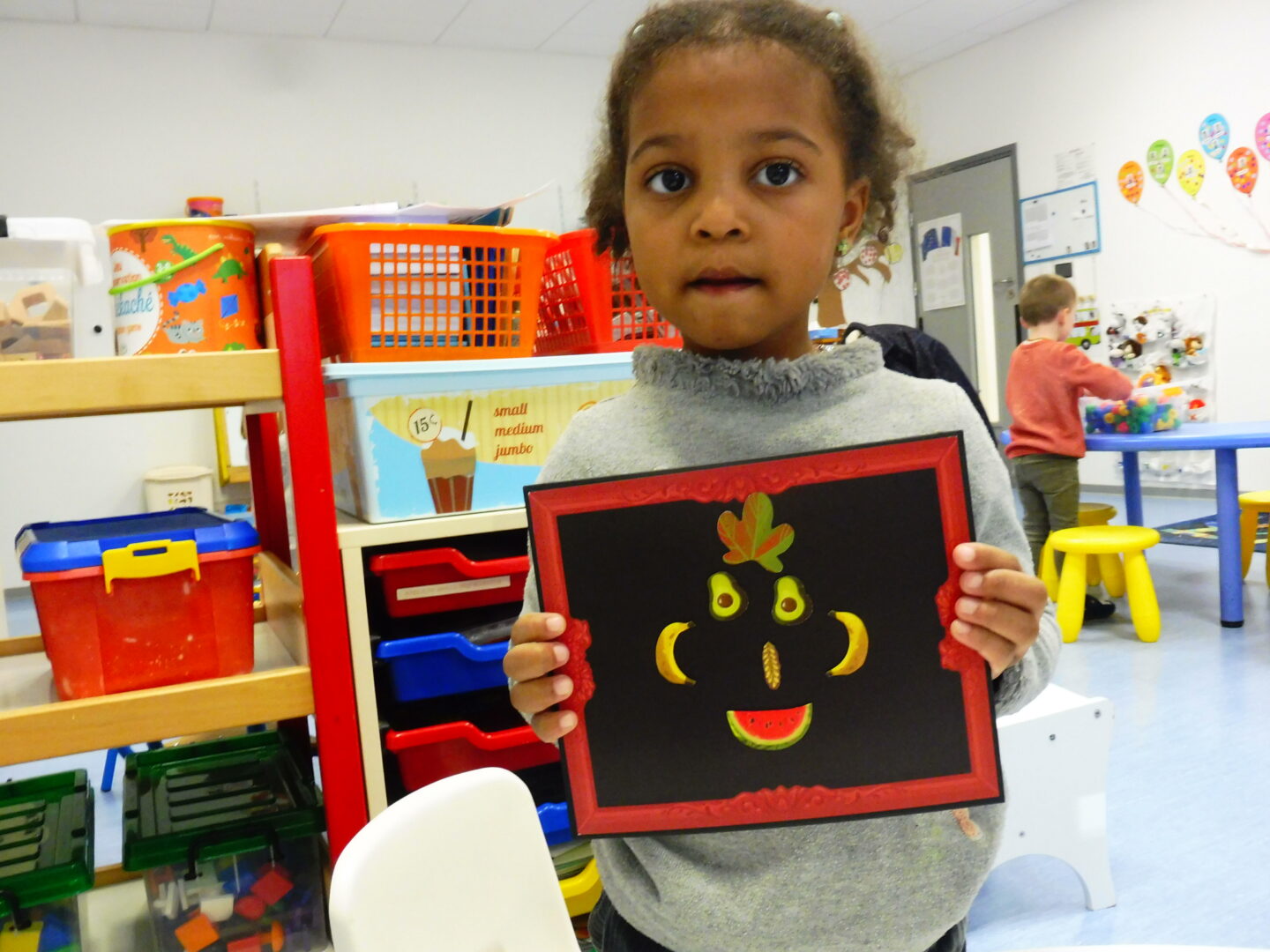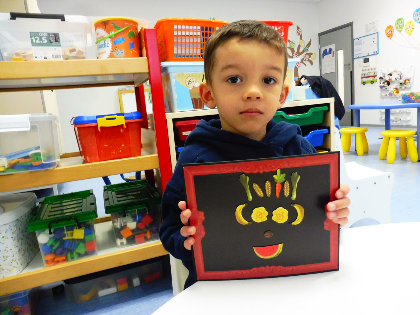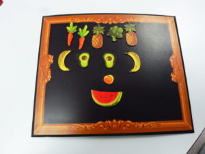 La maîtresse nous a demandé de faire à notre tour un visage avec des fruits et légumes: