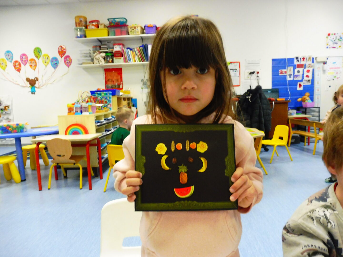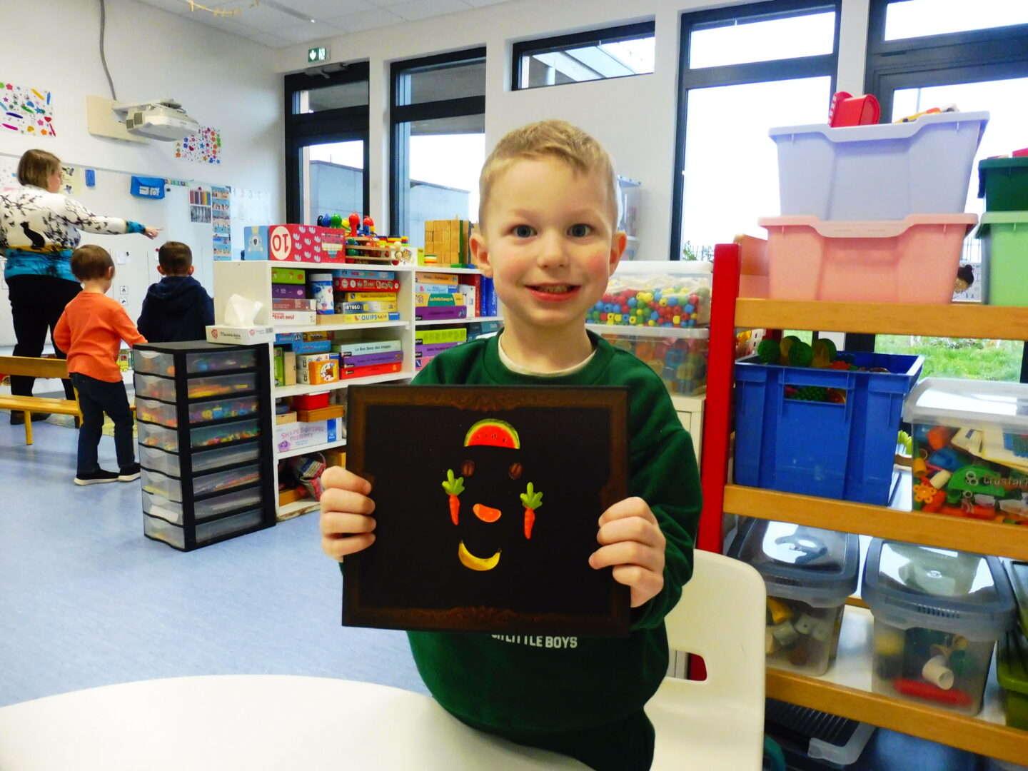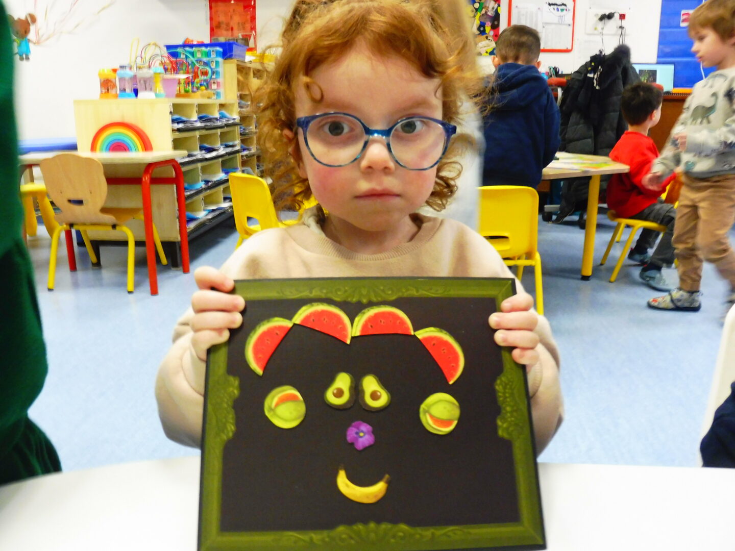 La maîtresse nous a demandé de faire à notre tour un visage avec des fruits et légumes: