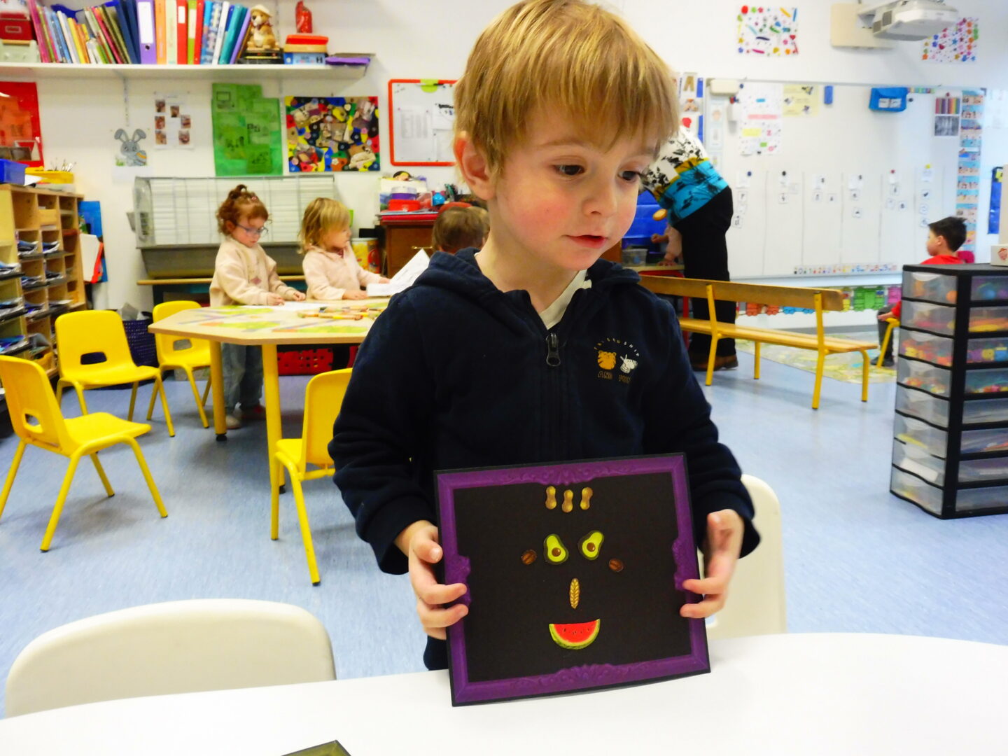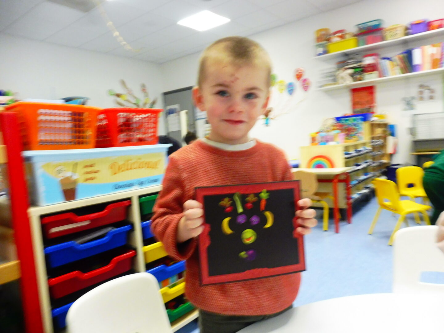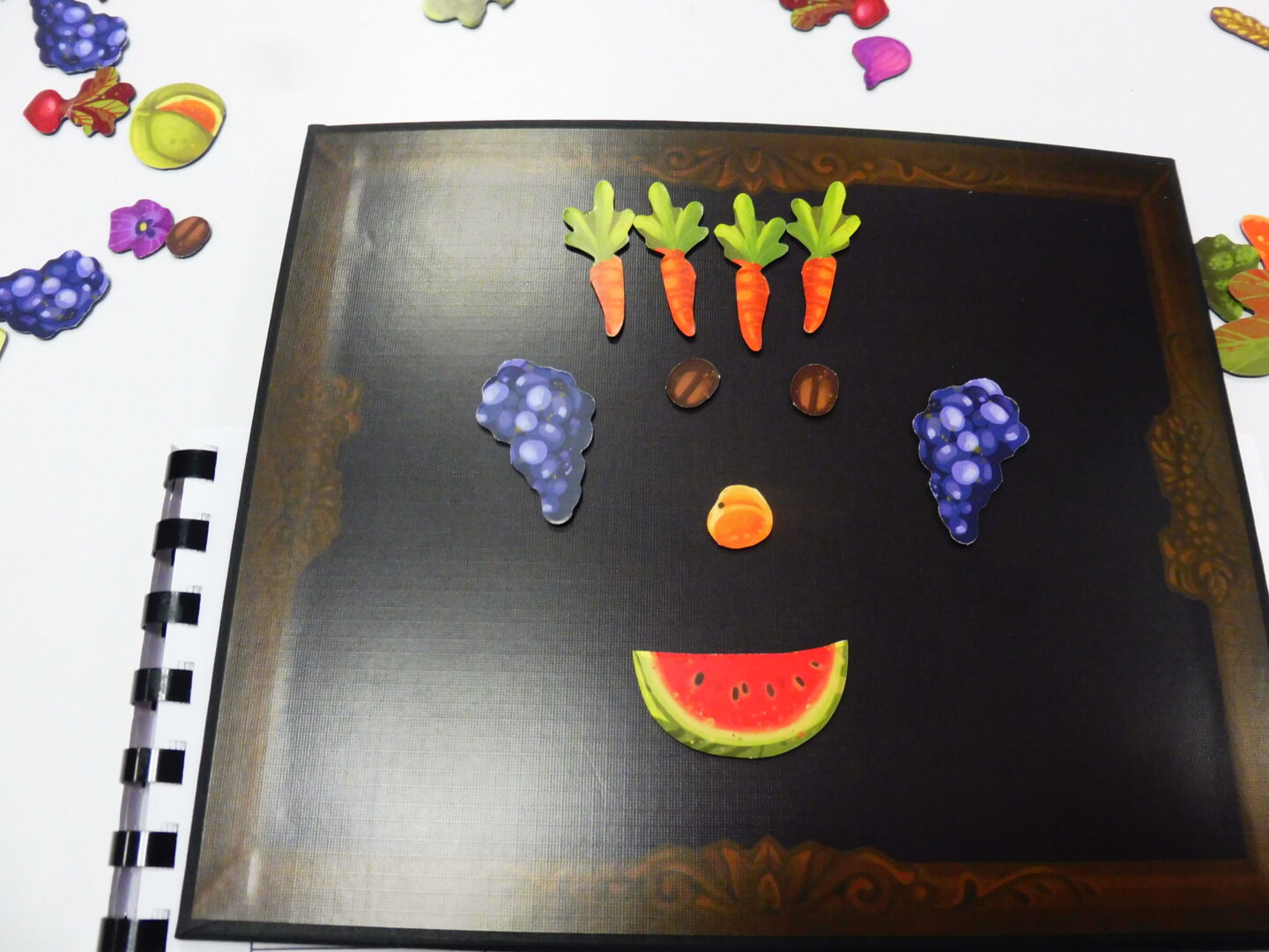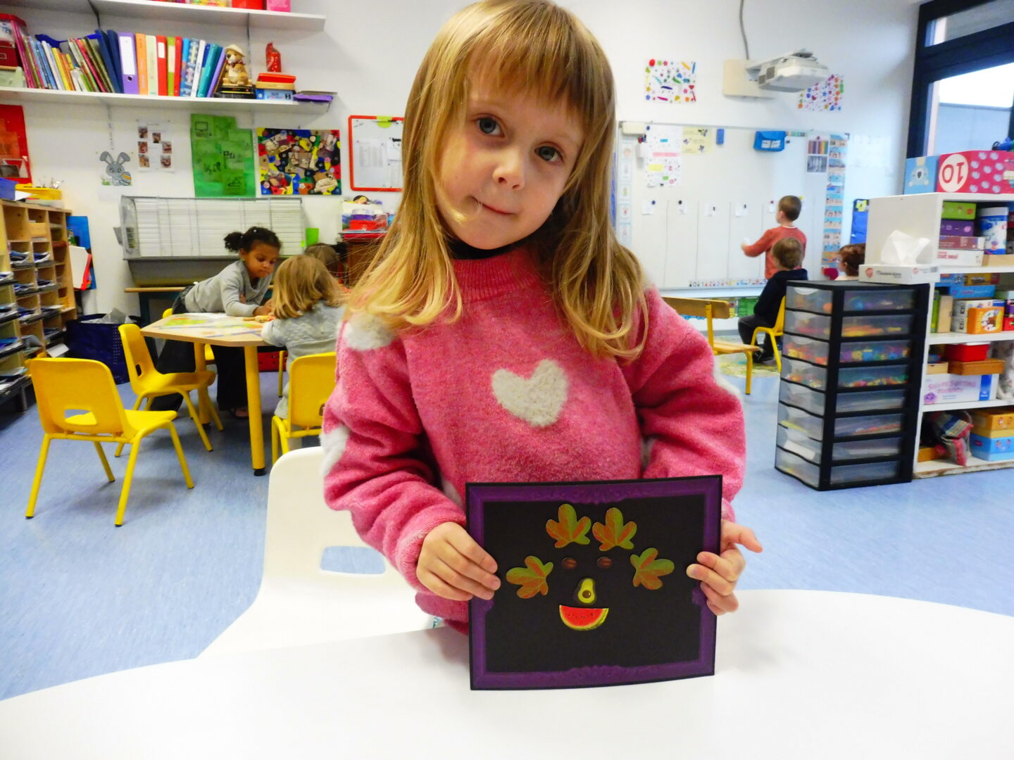 La maîtresse nous a demandé de faire à notre tour un visage avec des fruits et légumes: