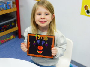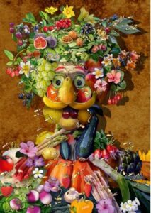 Pour continuer notre travail sur le corps humain et le visage, nous avons observé une peinture d’Arcimboldo. Nous avons vu que pour faire son visage il avait utilisé des fruits, des légumes et des fleurs.