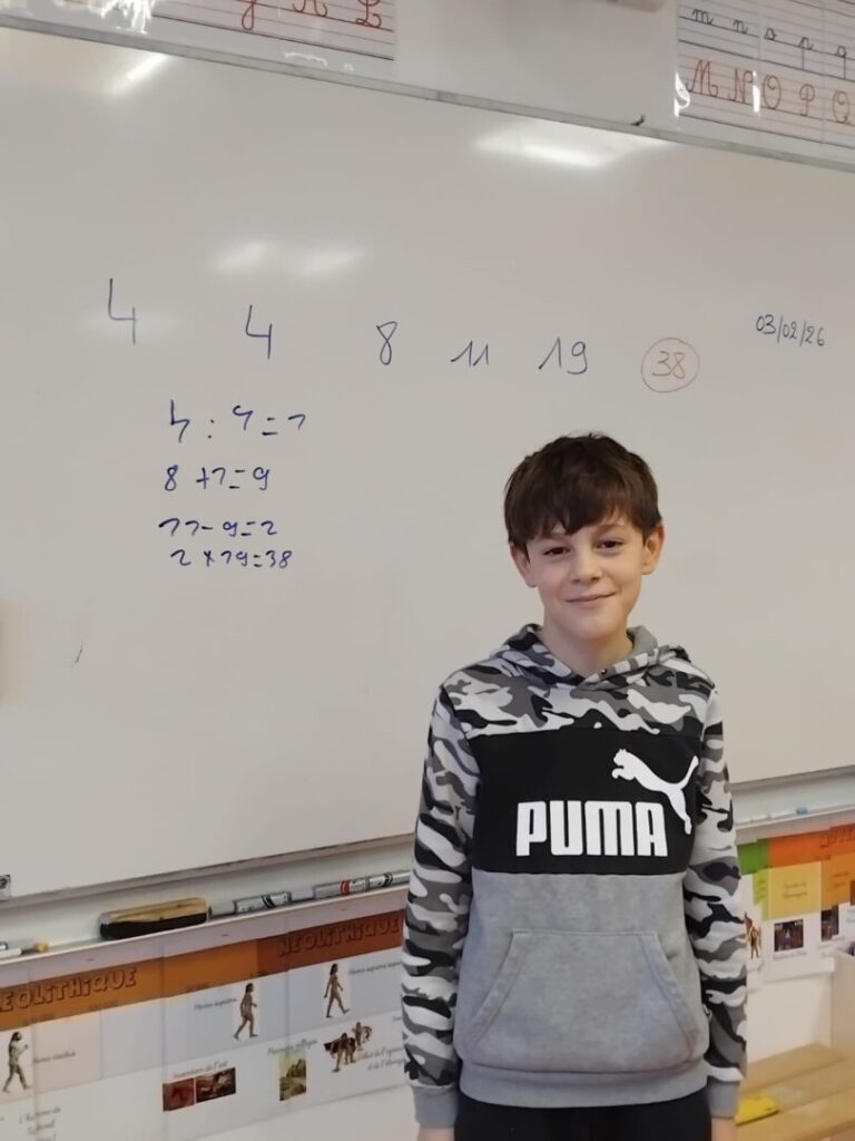 Pour la cinquième épreuve, les élèves devaient atteindre le nombre cible 38 en utilisant les nombres 4, 4, 8, 11 et 19.
