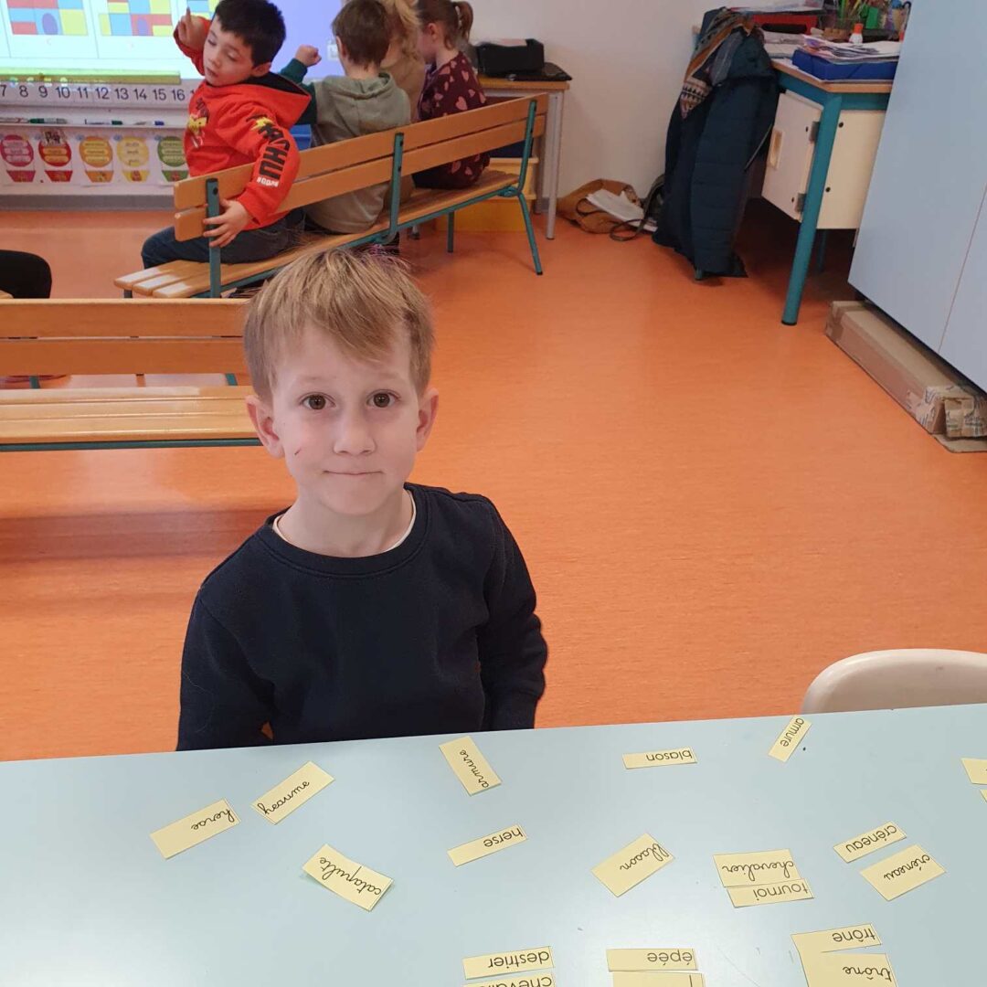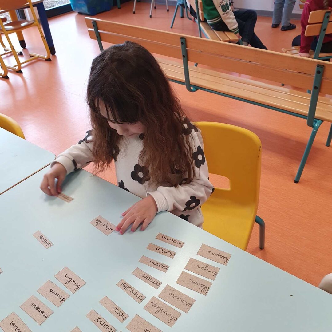 – nous avons associé des mots en script et en cursif, il fallait bien les observer (lettres qui se ressemblent, accents…)