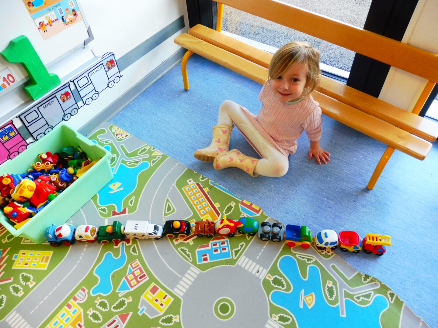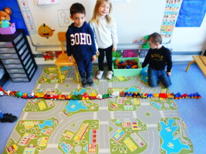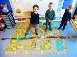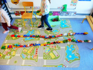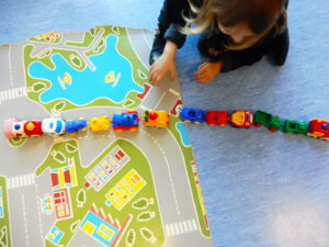 De retour en classe, nous avons fait des embouteillages avec les petites voitures de la classe.