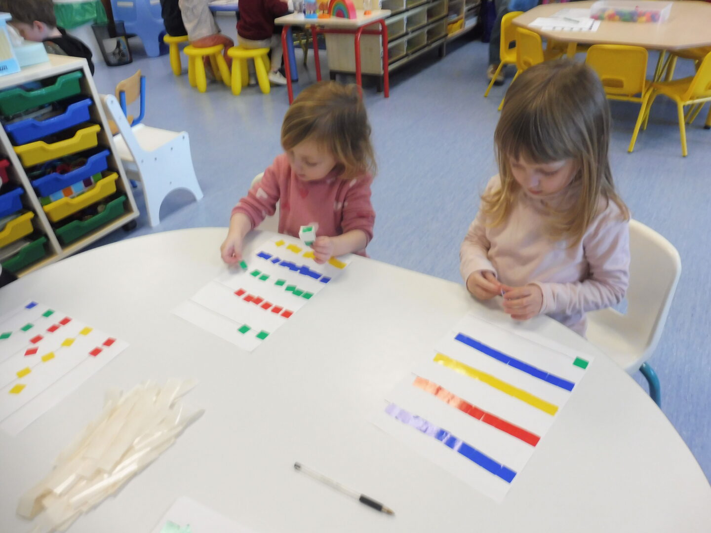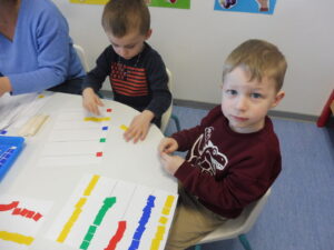 Pour finir, nous avons collé horizontalement des gommettes sur une feuille.