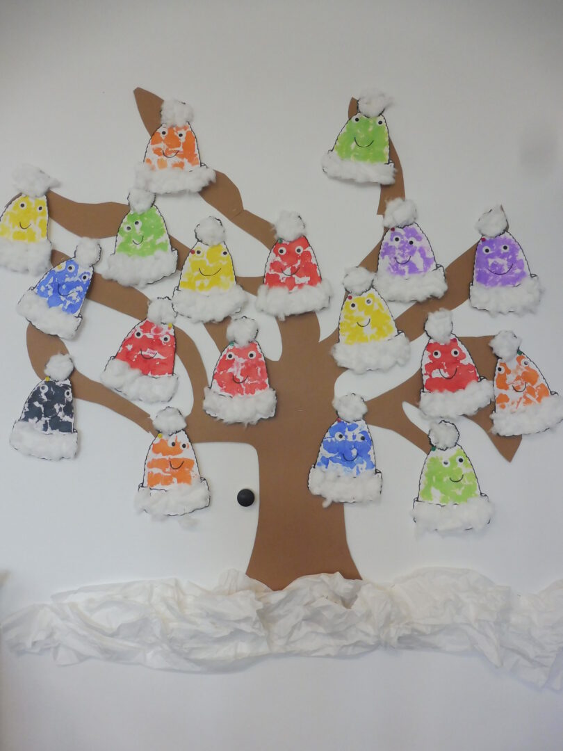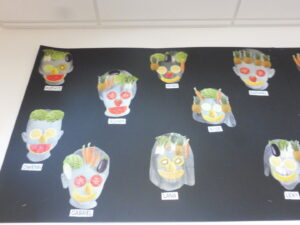 Cette semaine, nous avons également terminé les bonnets que nous avions commencé avant les vacances. Nous avons aussi fini nos visages à la manière d’Arcimboldo.