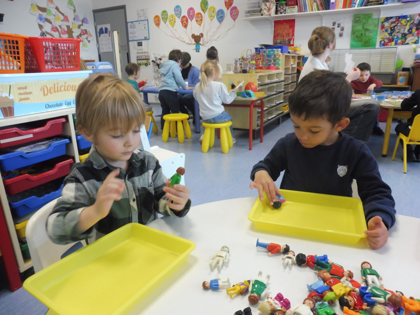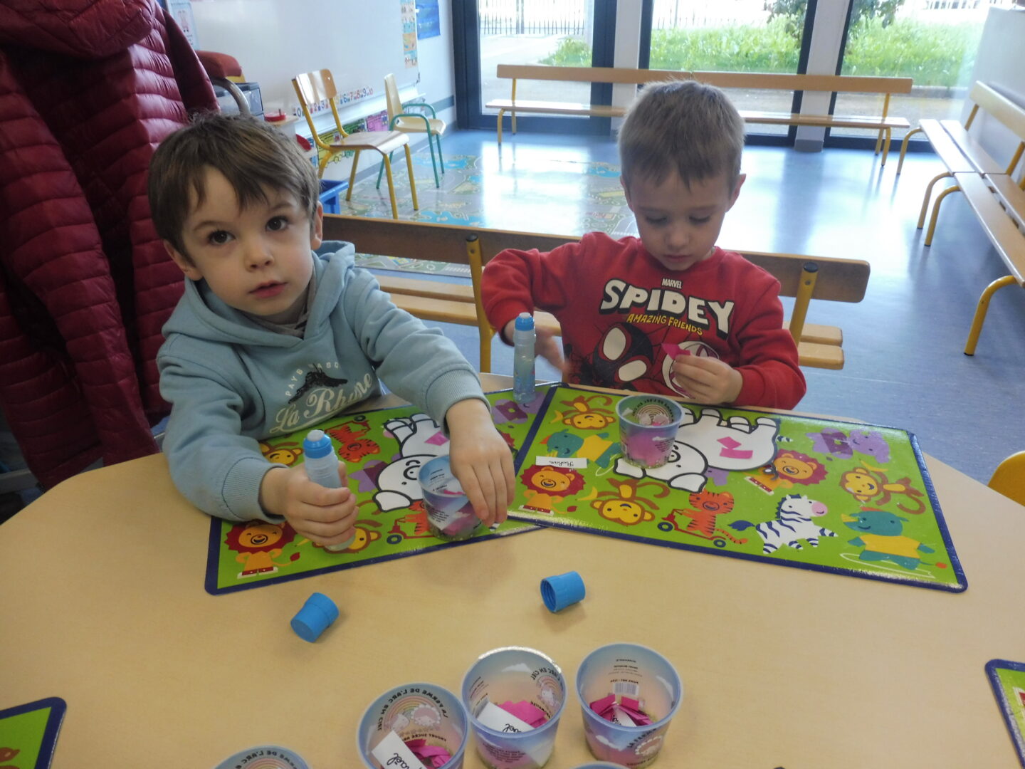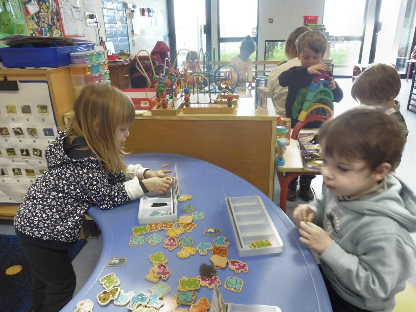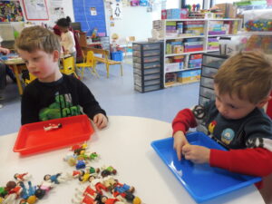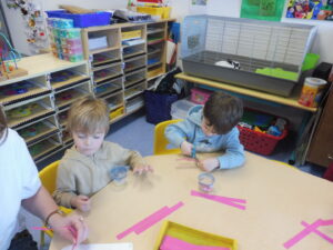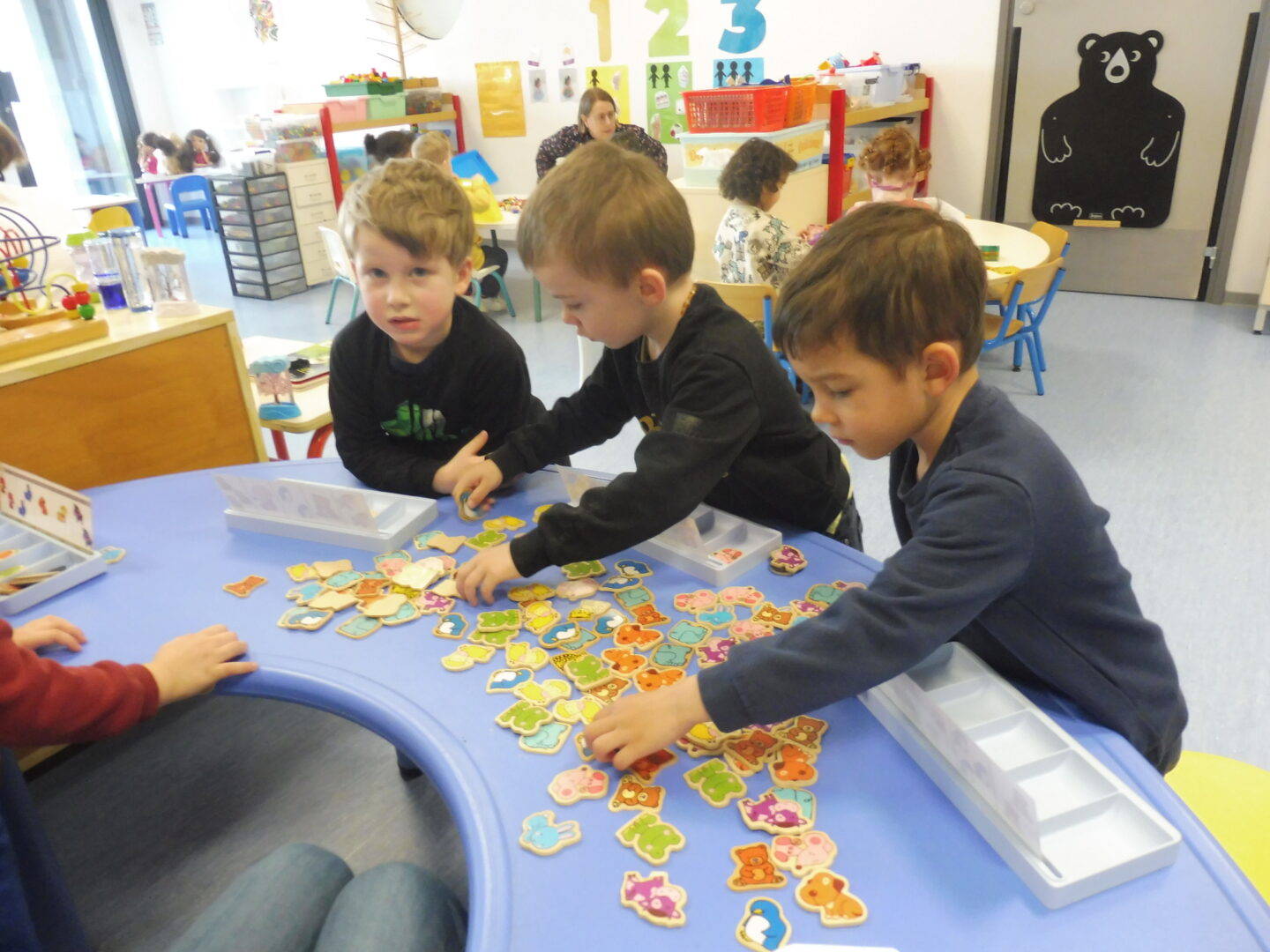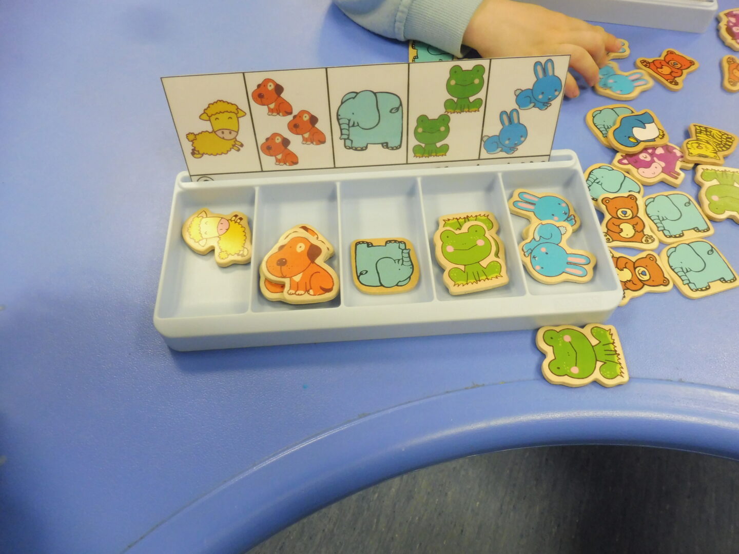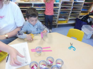 Pour finir, nous avons joué avec les boîtes à compter. Nous devons placer autant d’animaux que dessinés sur la fiche.