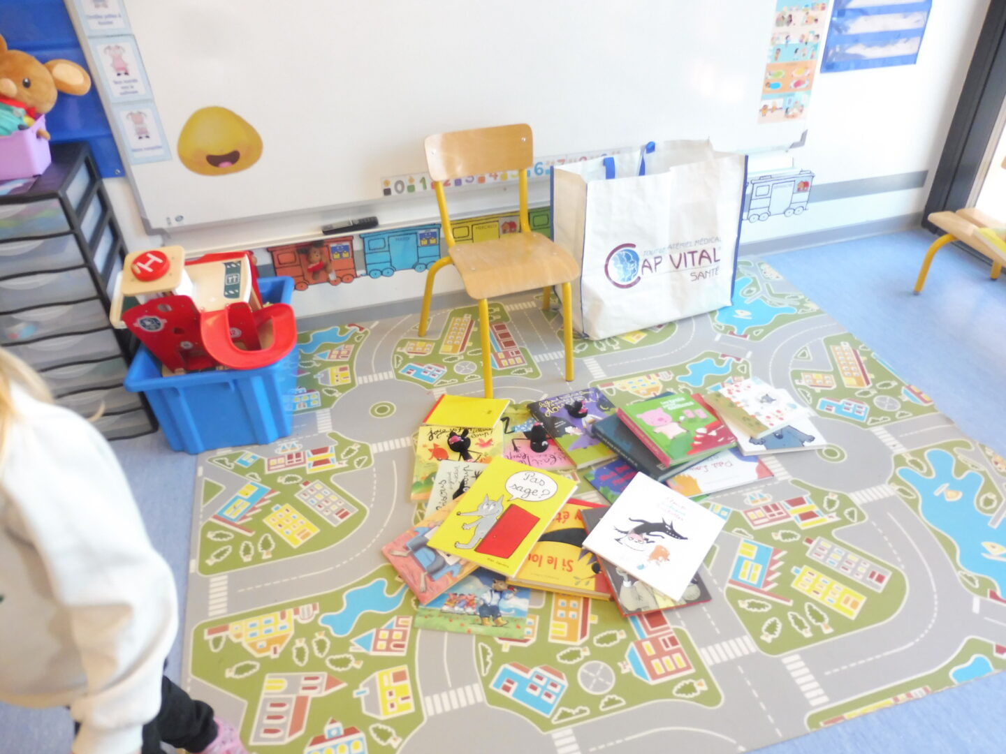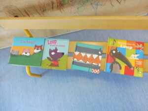 En langage, nous avons commencé un travail autour du loup. La maîtresse nous a demandé de chercher tous les livres avec un loup.