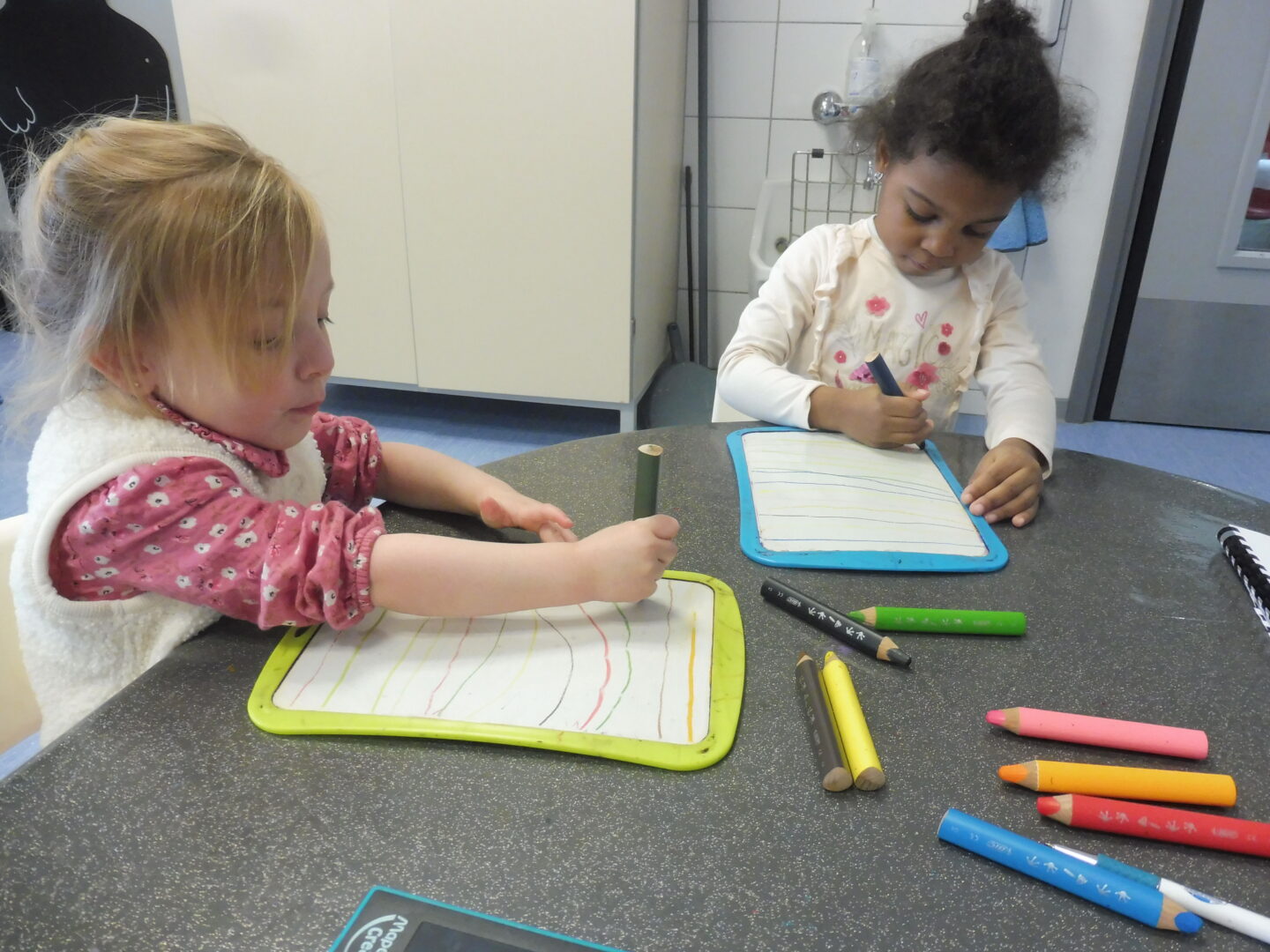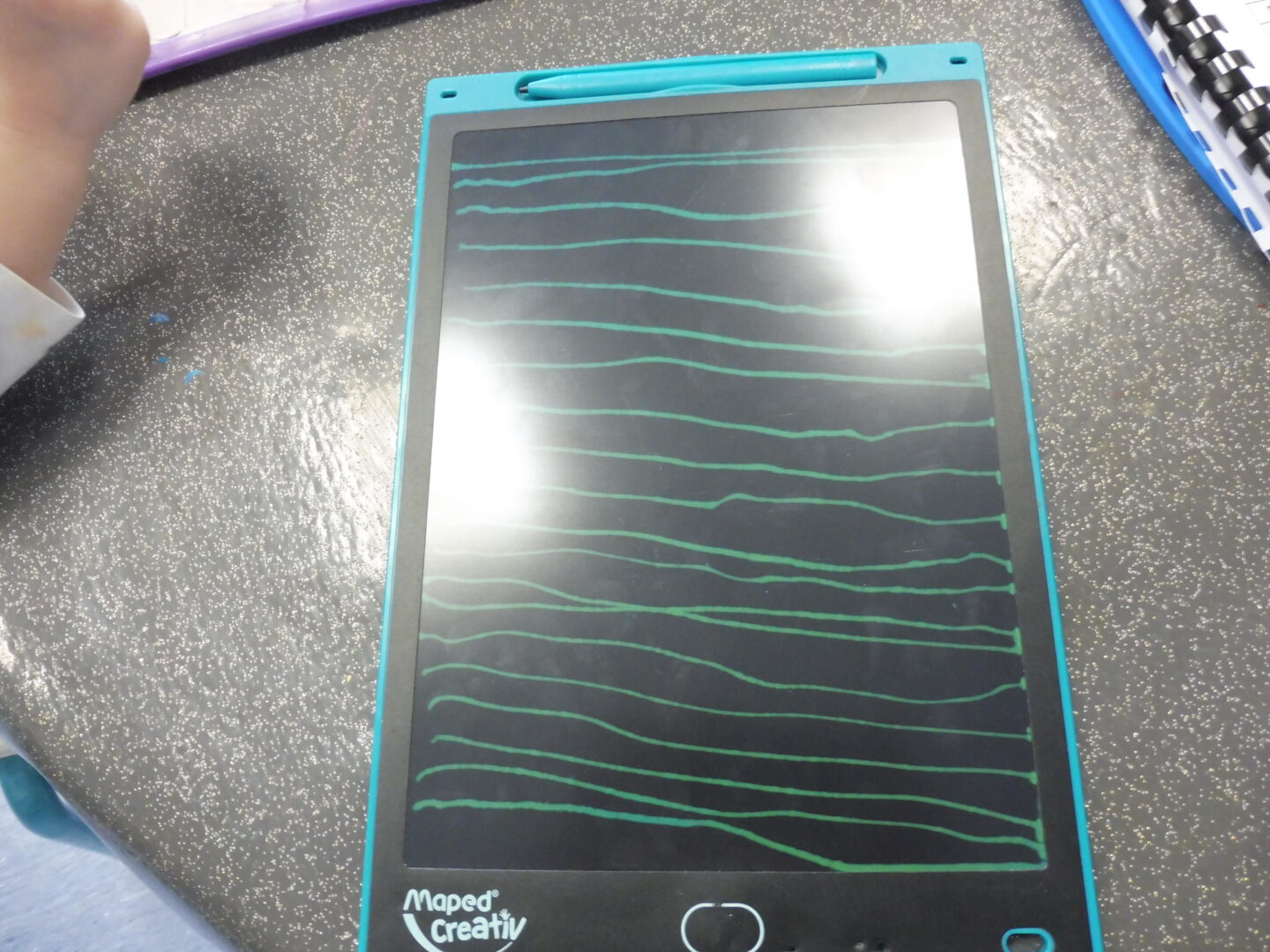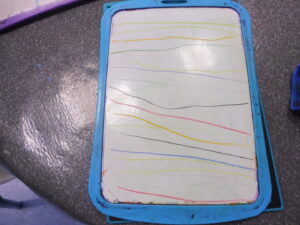Puis nous avons tracé des traits sur l’ardoise magique et l’ardoise.